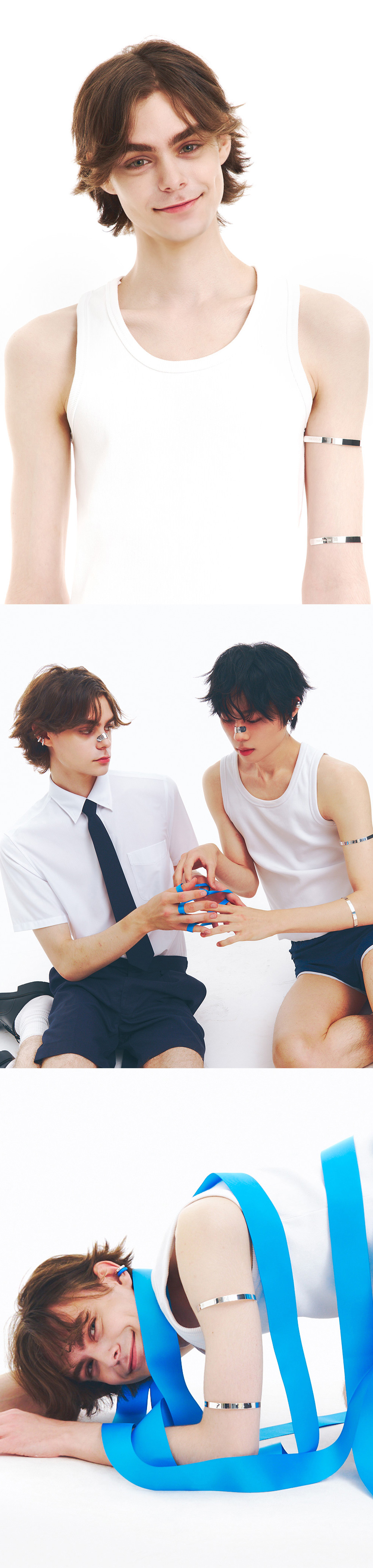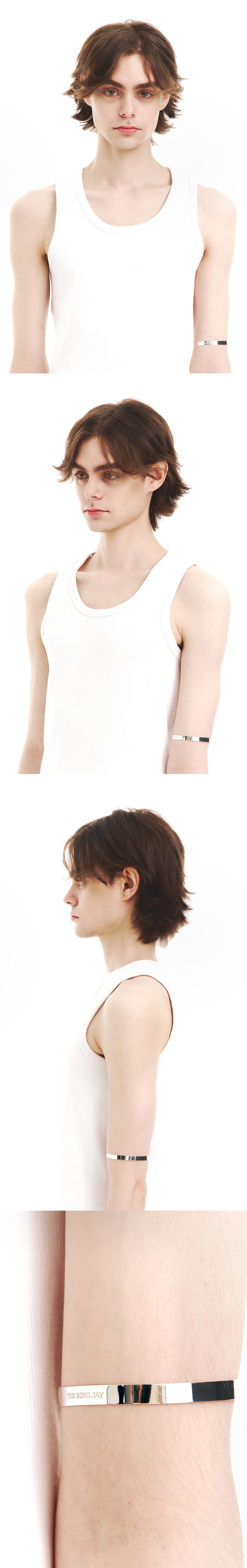 주문제작 상품 (주문 후 7-10일 이내 출고) 프레피 무드에 반항적인 감성을 더한 아이비리그 스타일 암커프. 슬림한 두께와 텐션감으로 팔에 자연스럽게 밀착되며, 슬리브리스와 매치해 트렌디한 무드를 연출할 수 있는 시즌 키 아이템.
