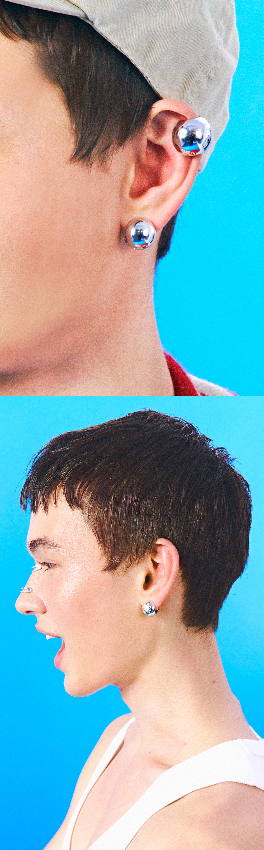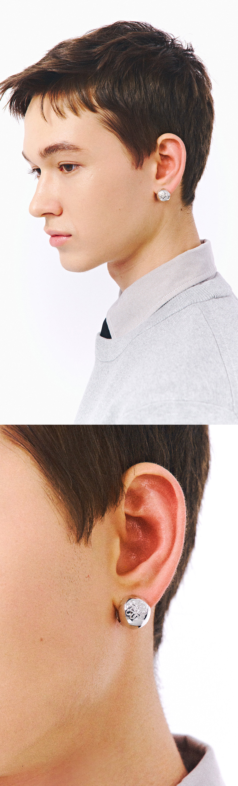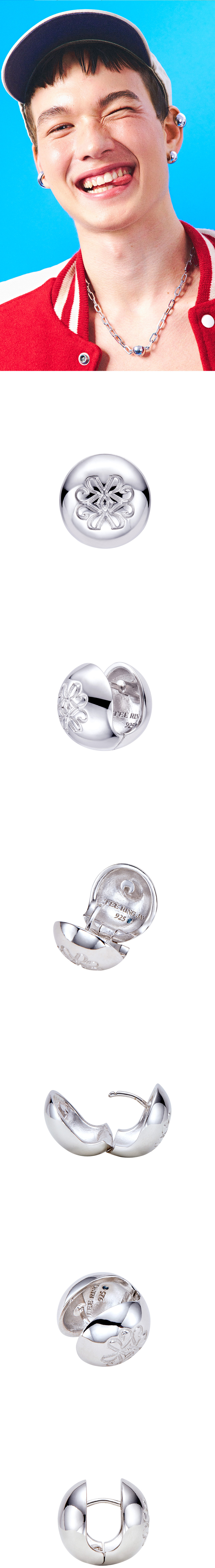 주문제작 상품 (주문 후 7-10일 이내 출고) Blue Diamond Settings. TEE RING JAY의 아이코닉한 마블 쉐입으로 간결하게 완성된 리버서블 이어링. 정교한 로고각인과 네추럴 블루 다이아 세팅으로 디테일을 더한 아이템.