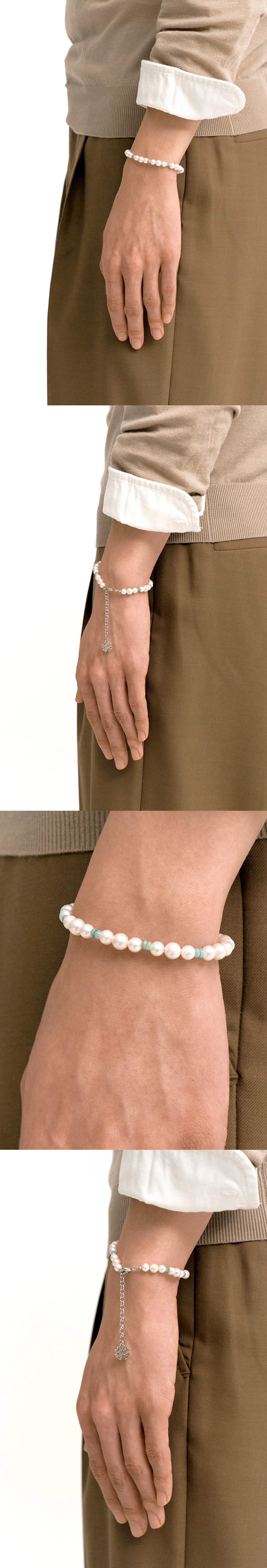 주문제작 상품 (주문 후 7-10일 이내 출고) 담수 바로크 진주와 천연 바다자개로 제작된 브레이슬릿. 불규칙한 형태의 진주와 자개를 일정한 패턴으로 나열하여 완성한 위트있는 포인트 아이템.