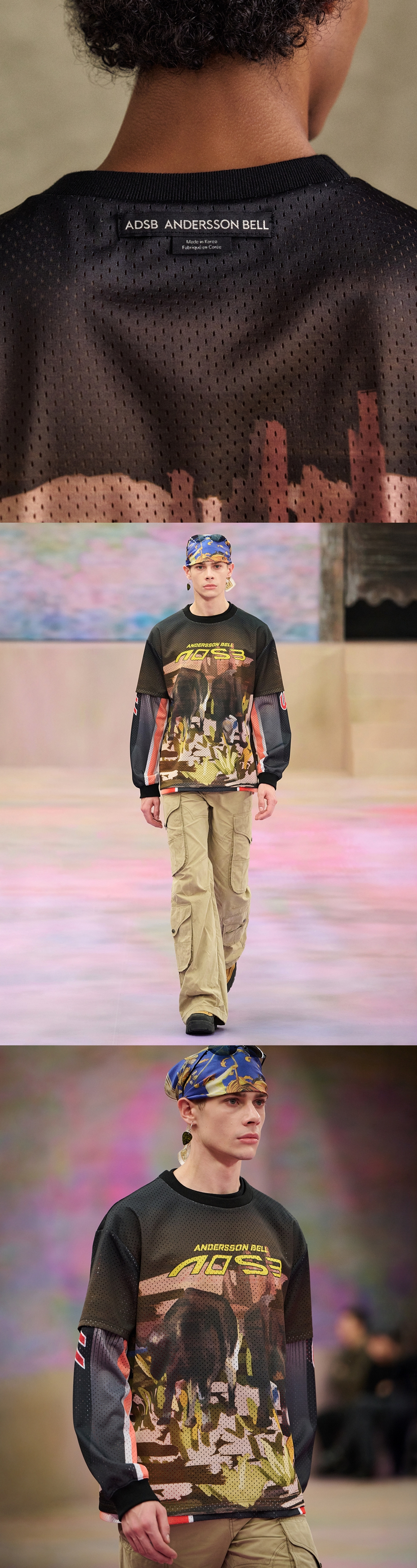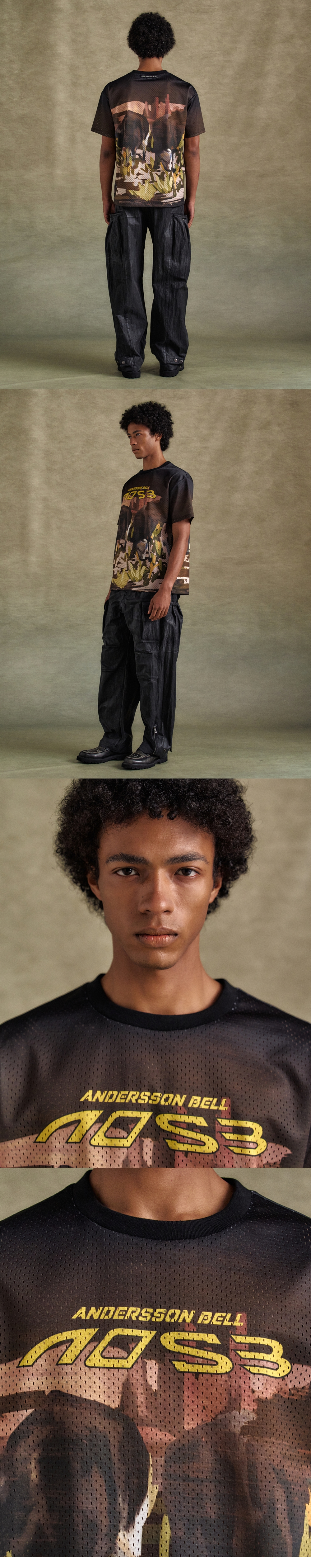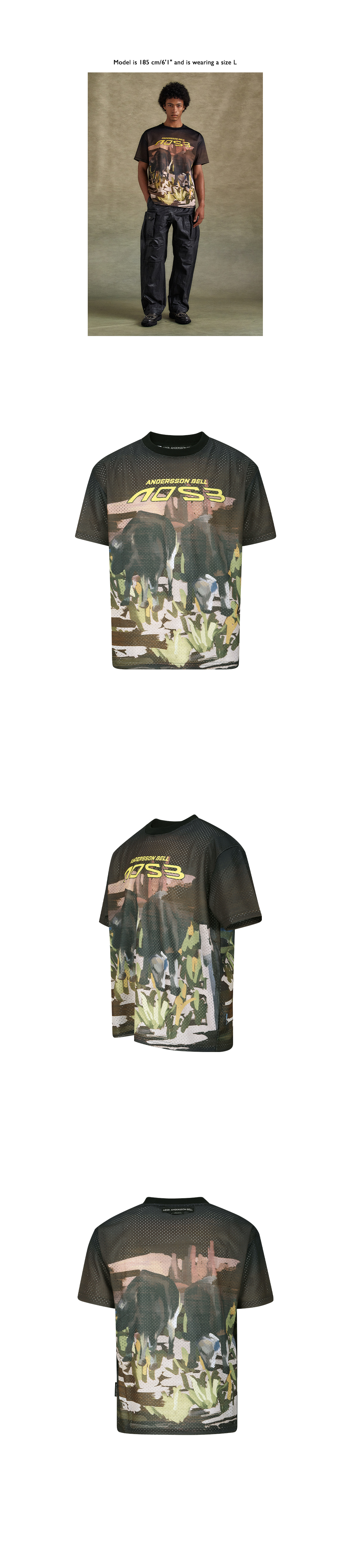 앤더슨벨 카우 프린티드 메쉬 티셔츠 브라운