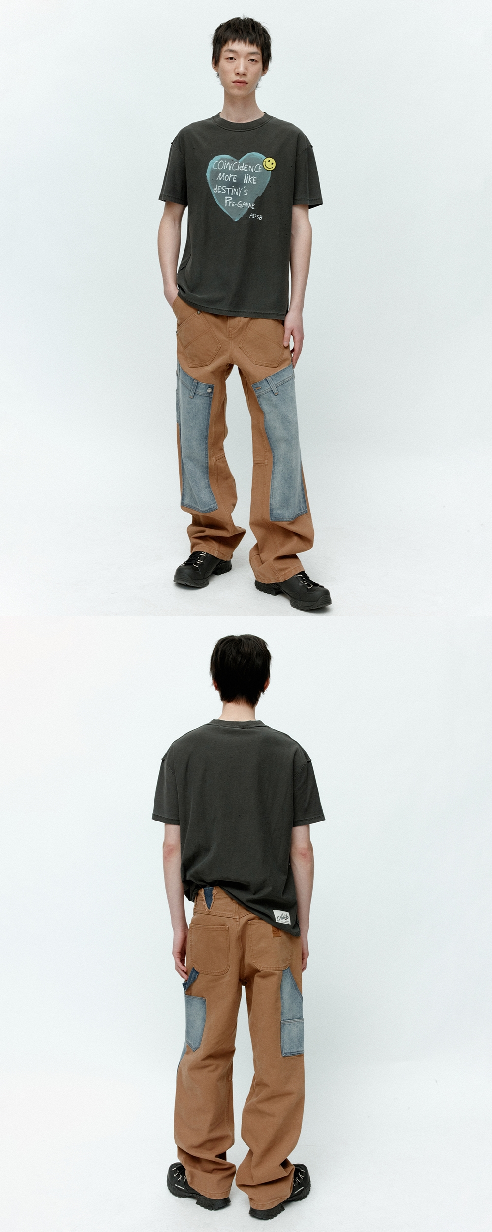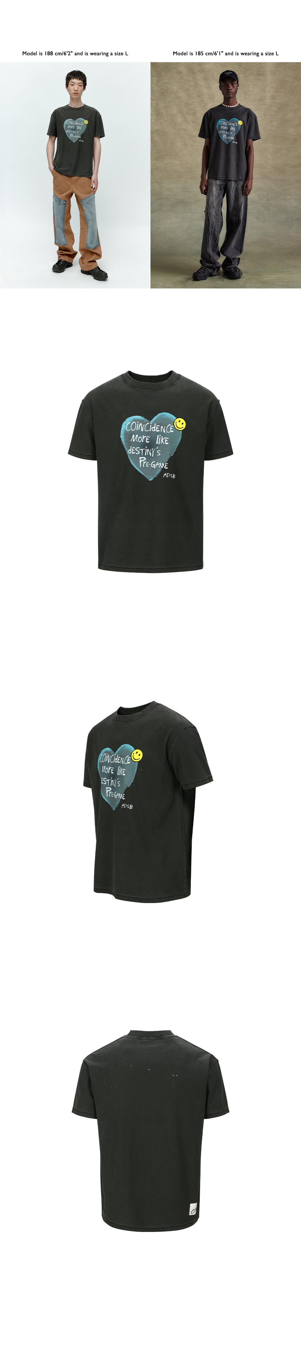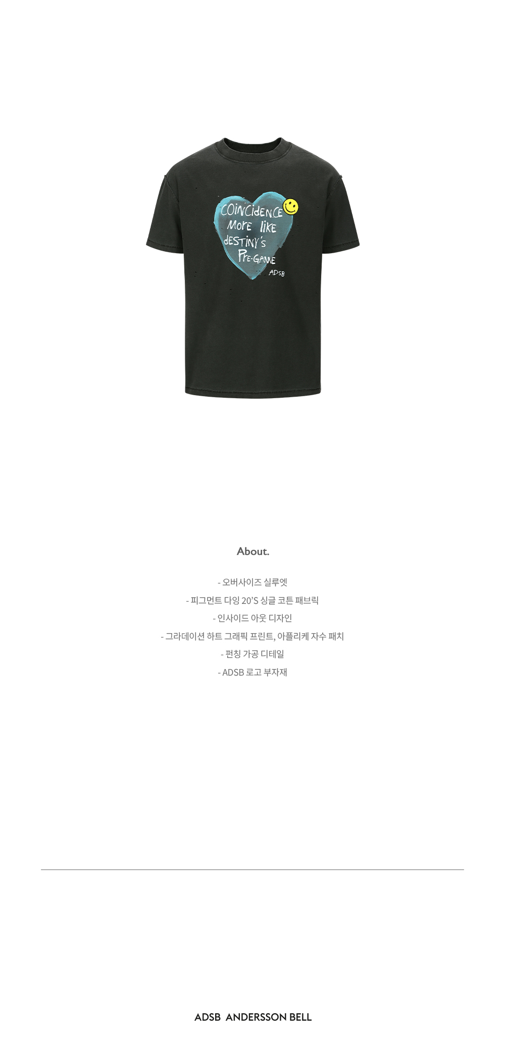앤더슨벨 유니섹스 하트 메세지 티셔츠 차콜