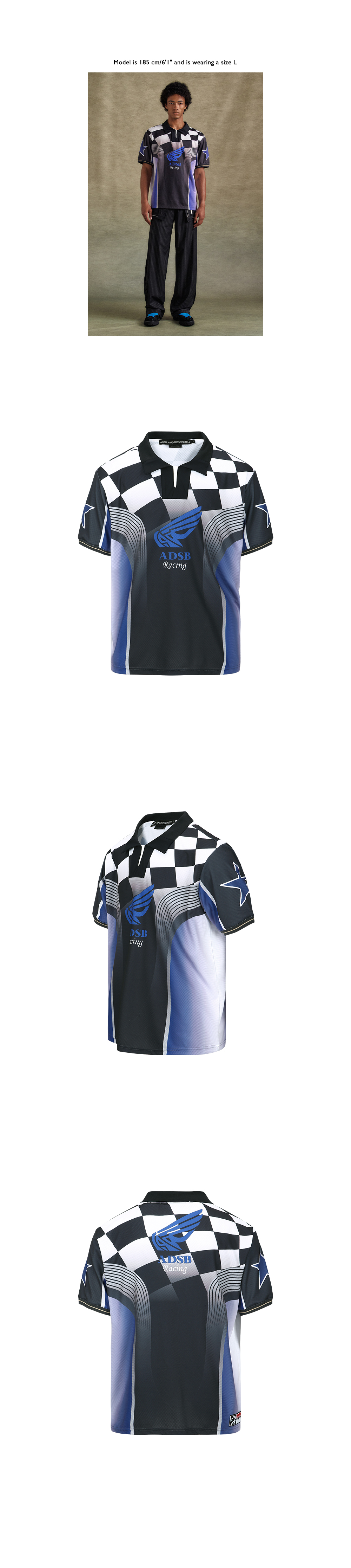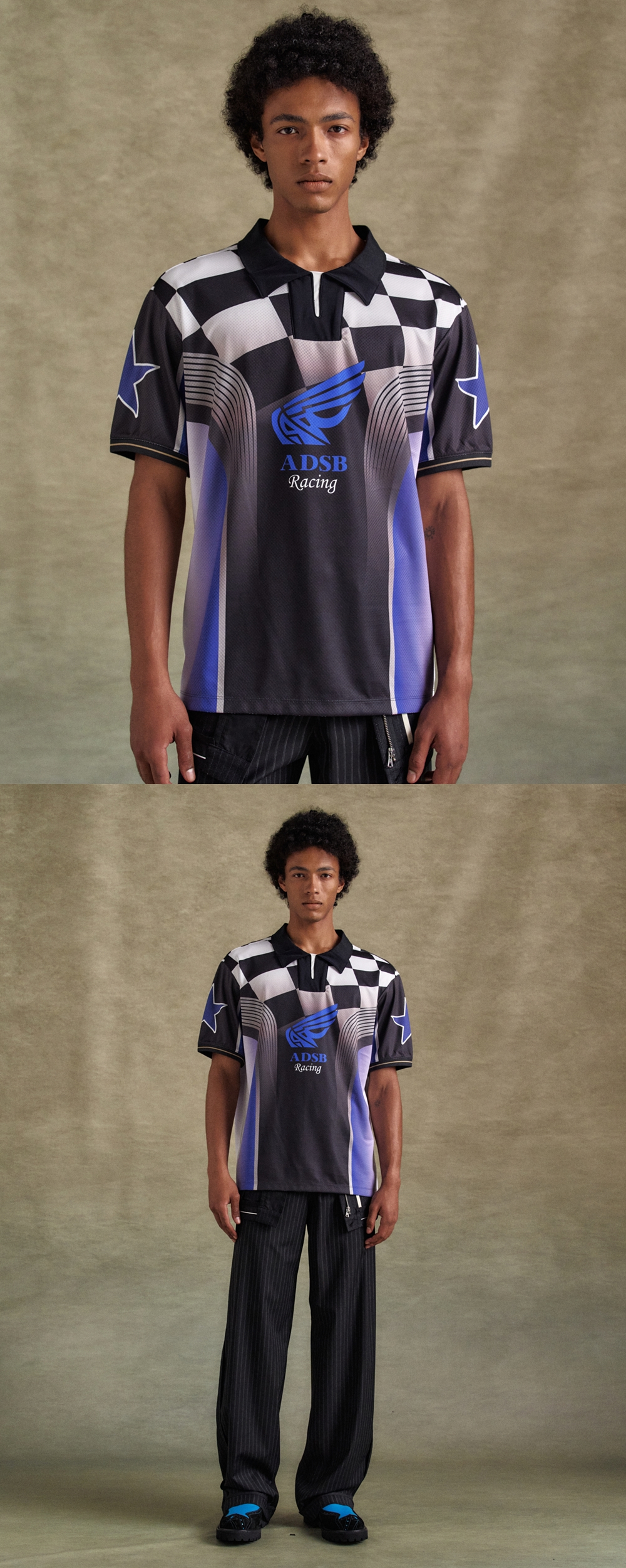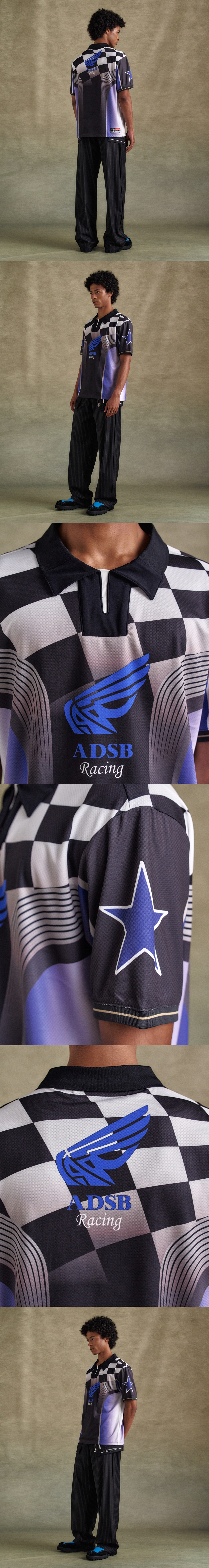 앤더슨벨 체커보드 레이싱 티셔츠 블루 블랙