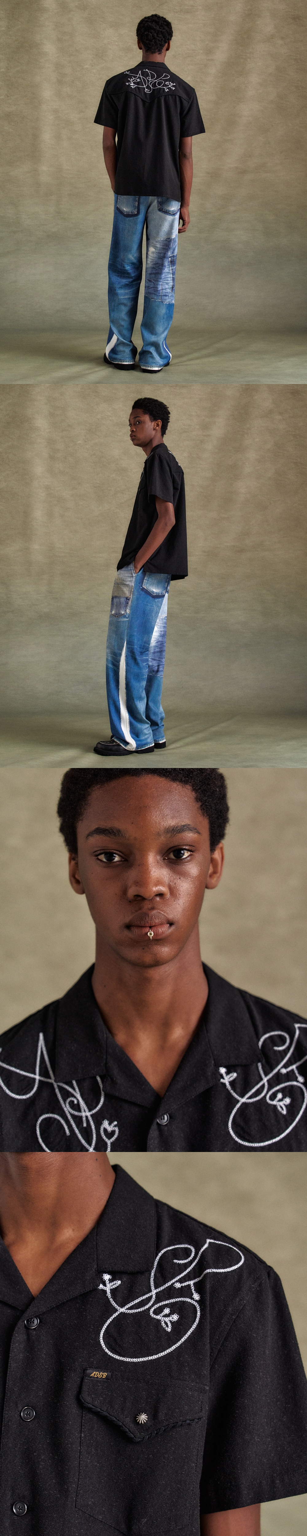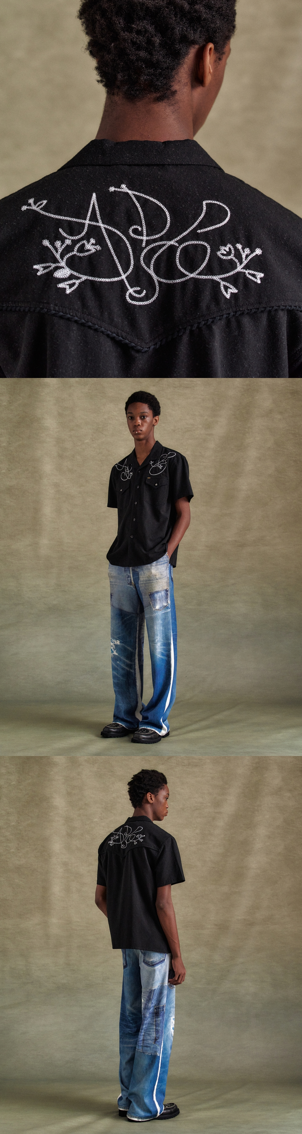 ADSB Andersson Bell Black Chain Embroidery Shirts Black