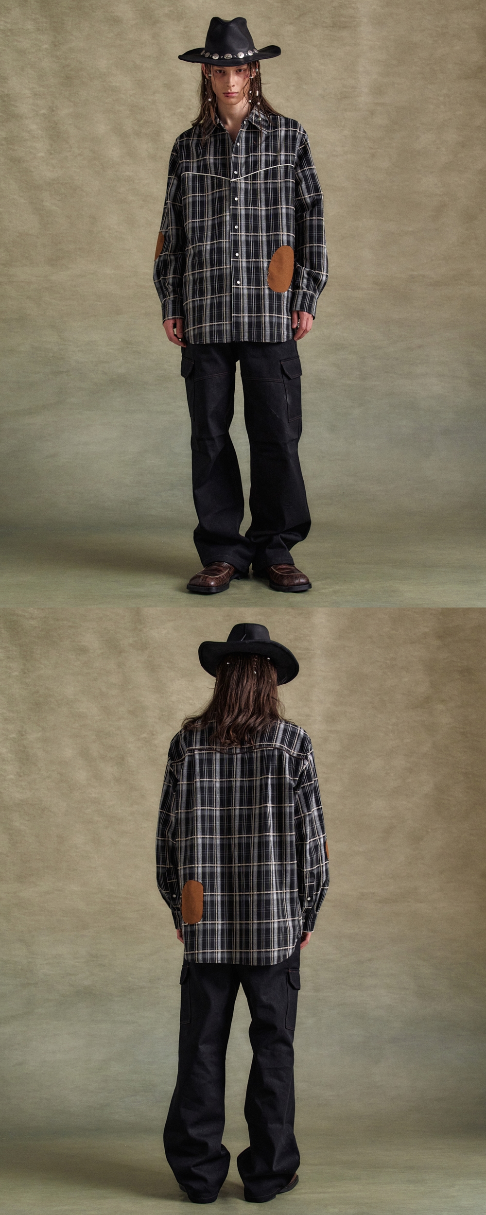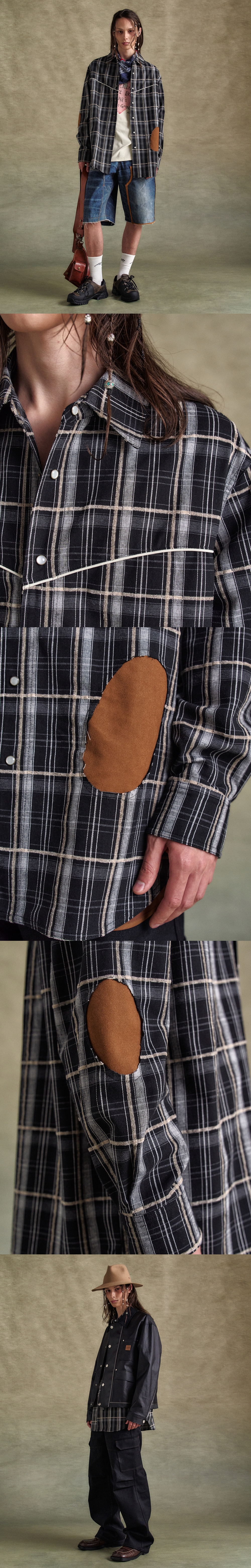 앤더슨벨 노아 패치 체크 셔츠 블랙