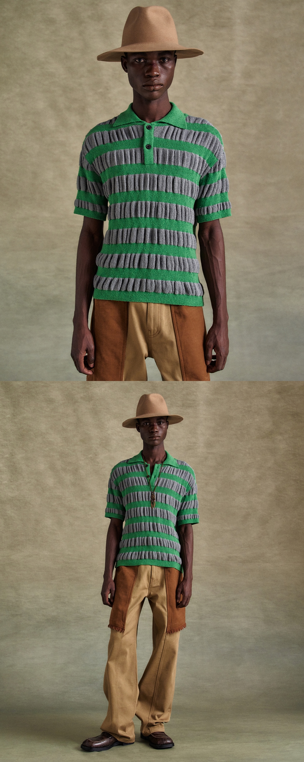 앤더슨벨 버블 스트라이프 폴로 스웨터 그레이 그린