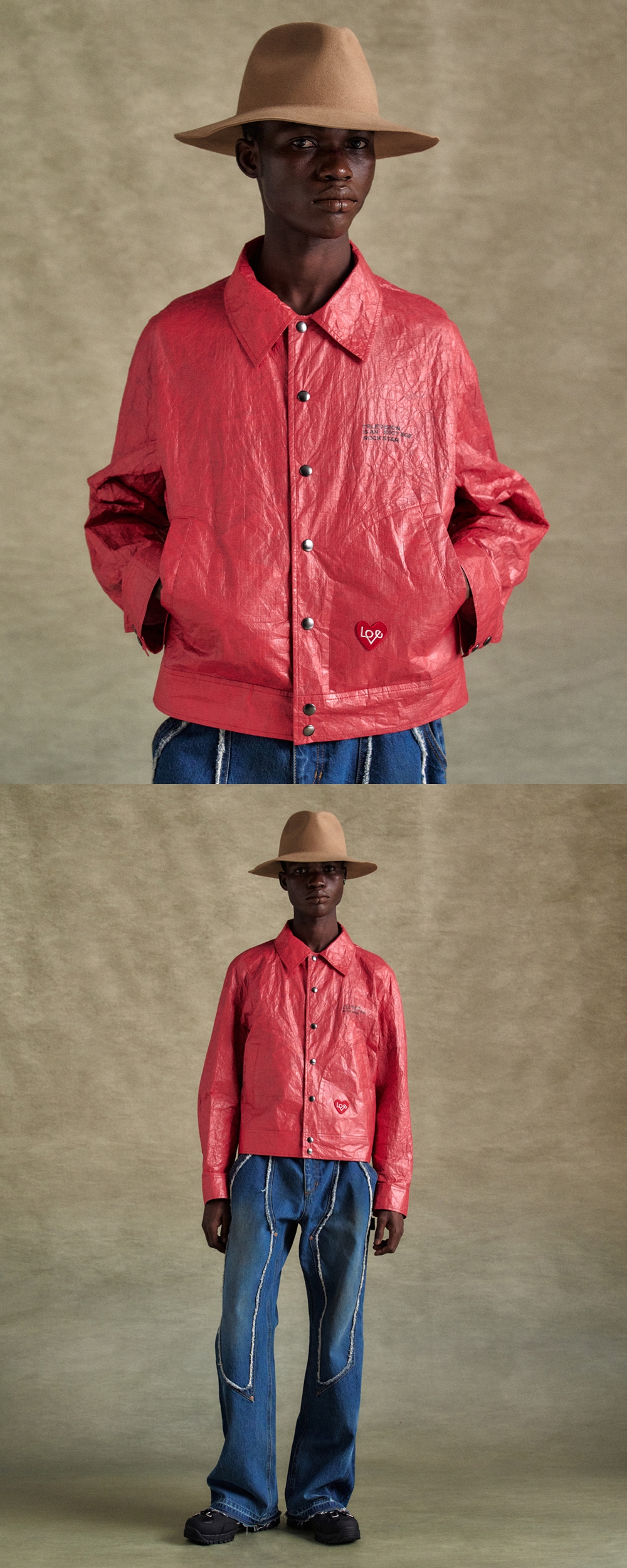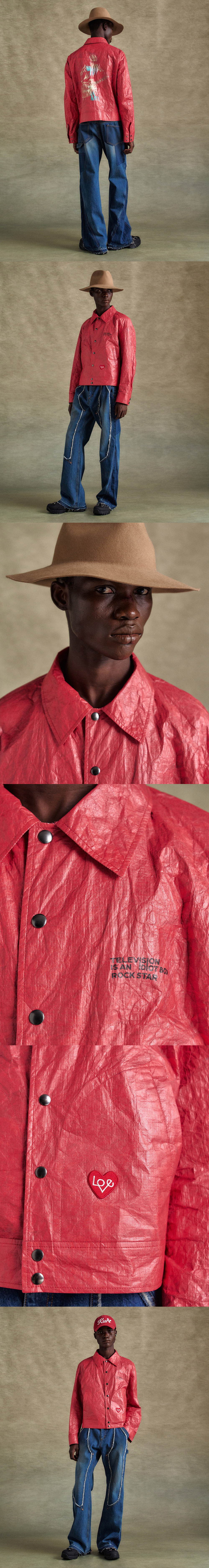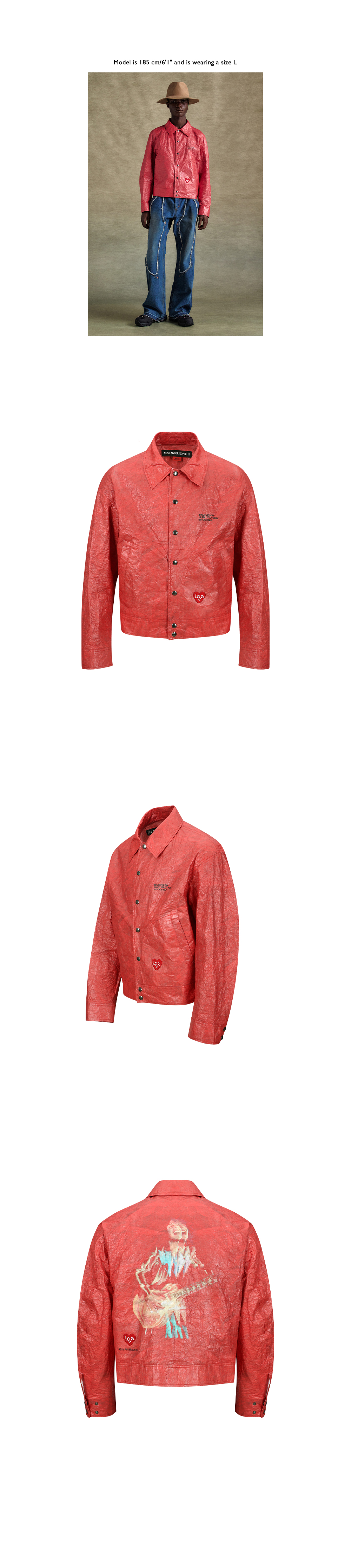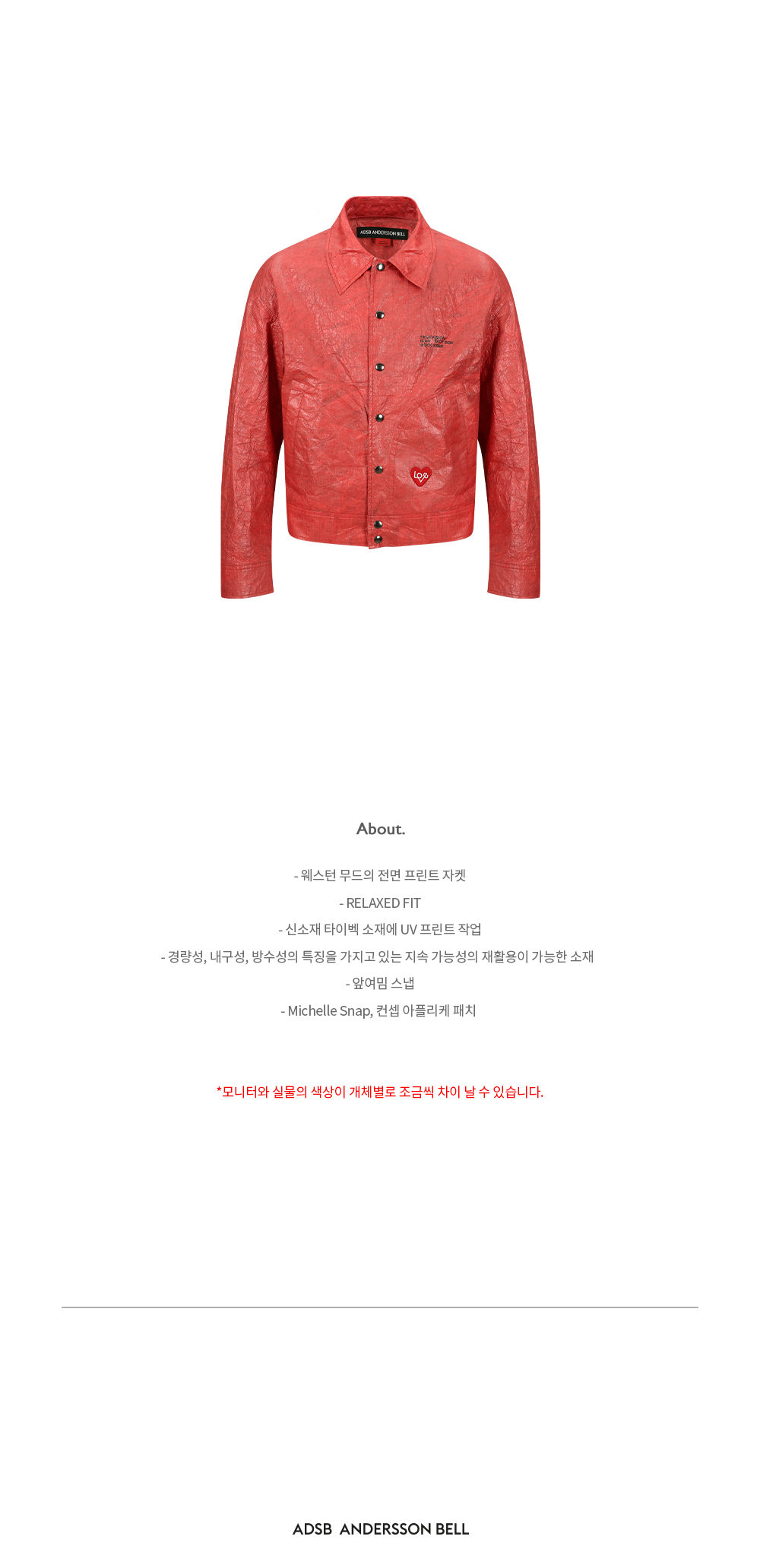 앤더슨벨 유니섹스 기타리스트 프린트 타이벡 자켓 레드