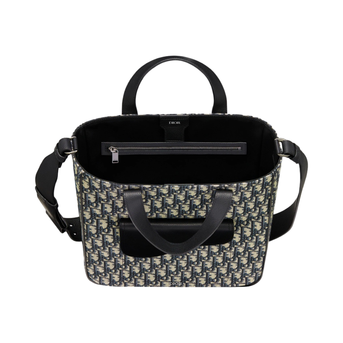 디올 새들 숄더 스트랩 토트백 베이지 & 블랙 디올 오블리크 자카드