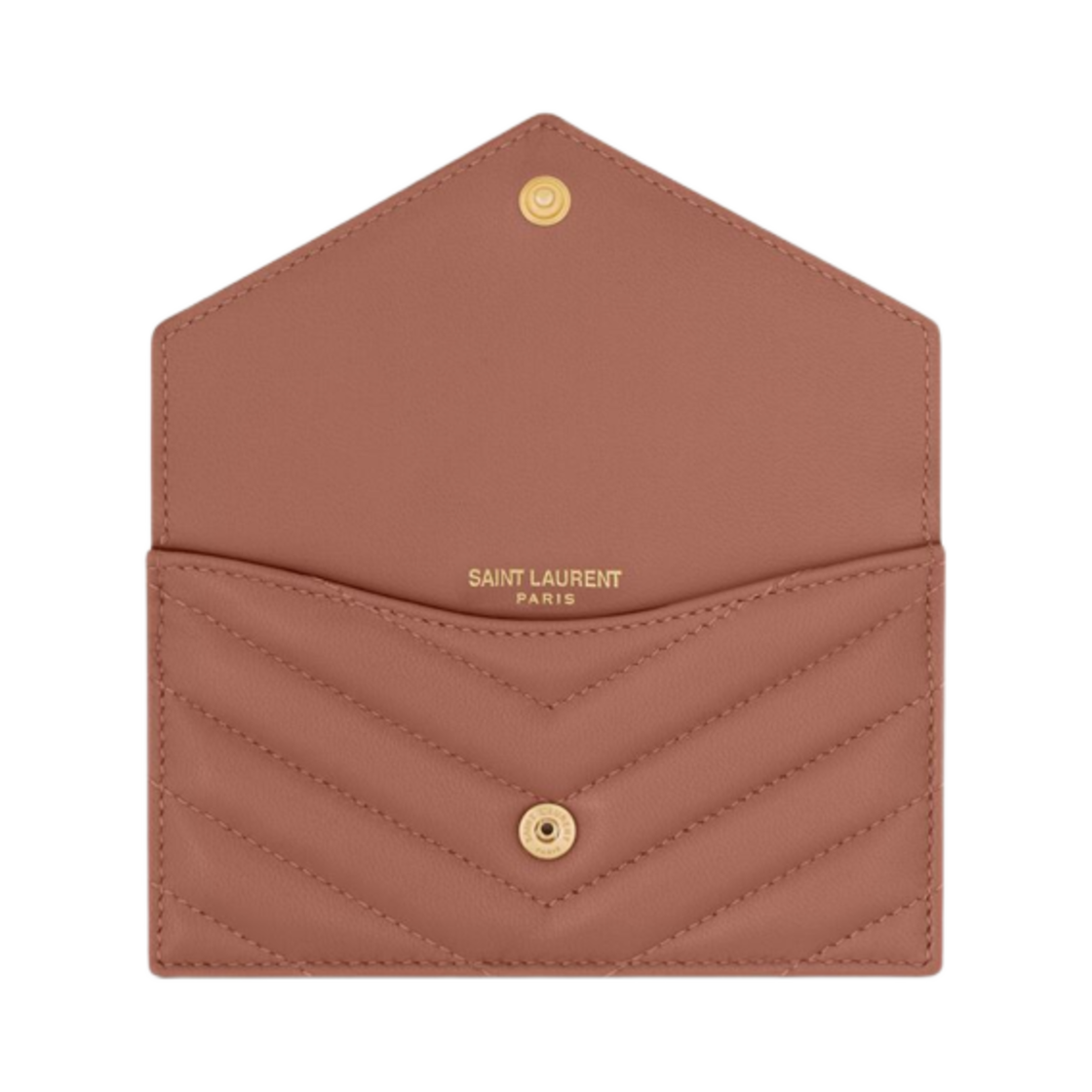 Saint Laurent Cassandre Fragments Flap Card Case in Lambskin Barely Pink