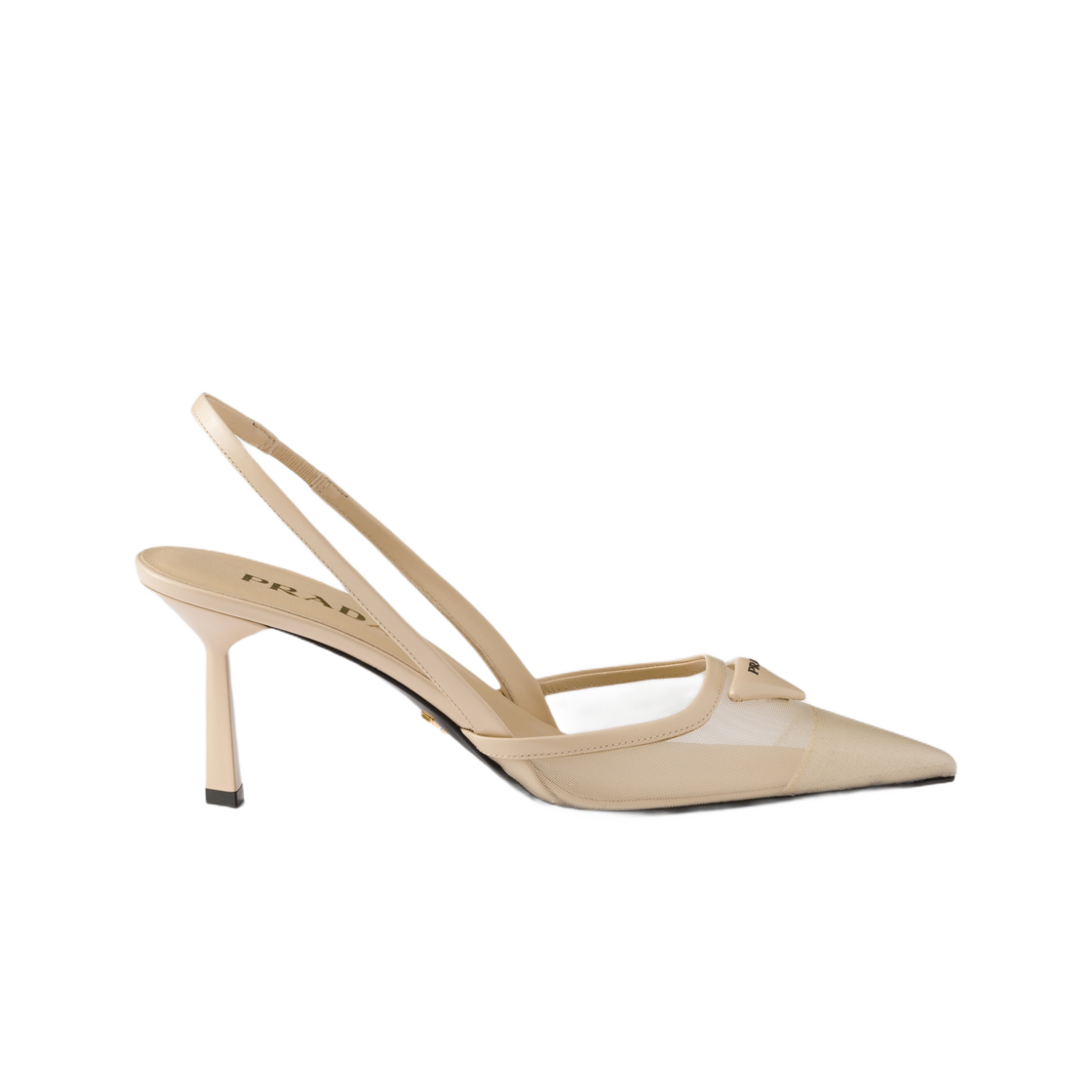 (W) 프라다 메쉬 패브릭 슬링백 펌프스 트래버틴 스톤