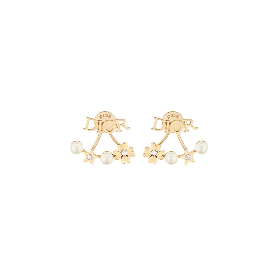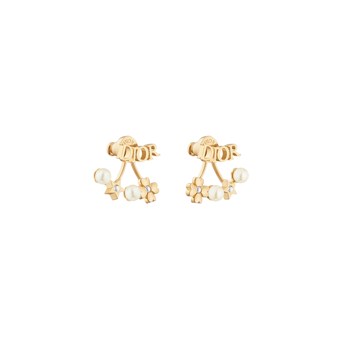 (W) 디올 디오레볼루션 이어링 골드 피니쉬 메탈 화이트 레진 펄 실버 톤 크리스탈