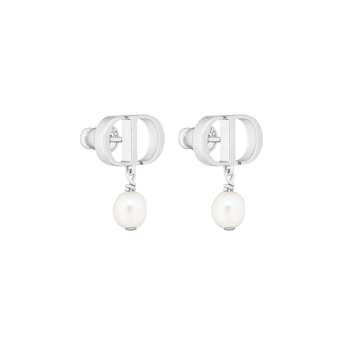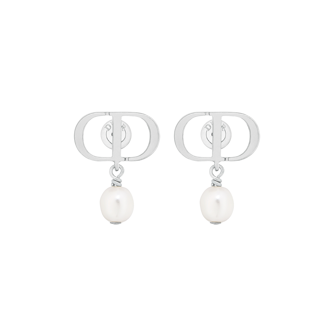 (W) Dior Petit CD Earrings Palladium Finish Metal White Resin Pearls