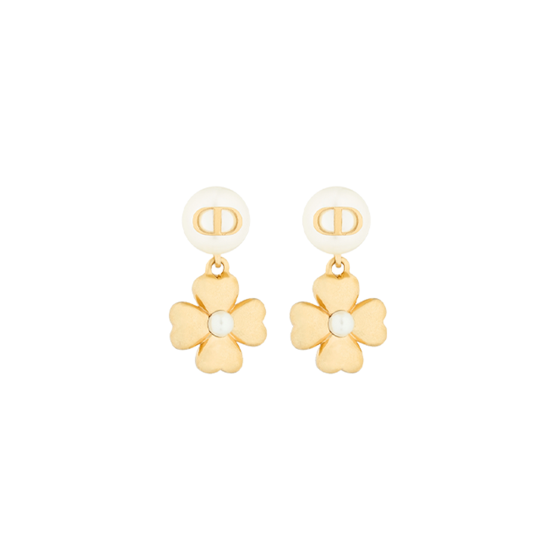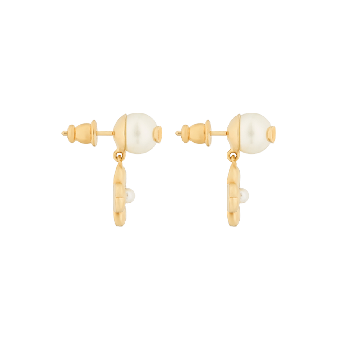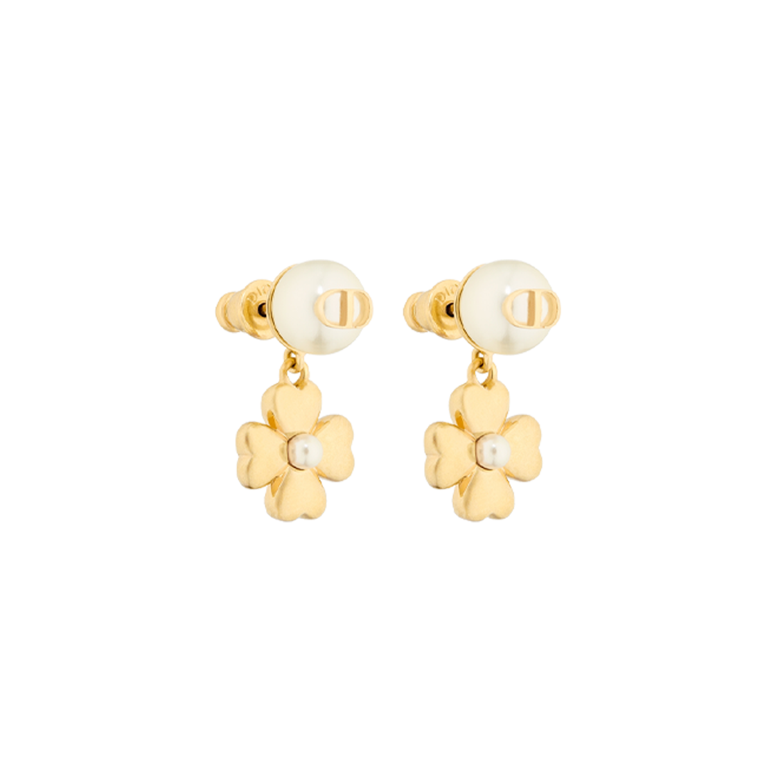 (W) Dior Lucky Dior Earrings Gold Finish Metal White Resin Pearls