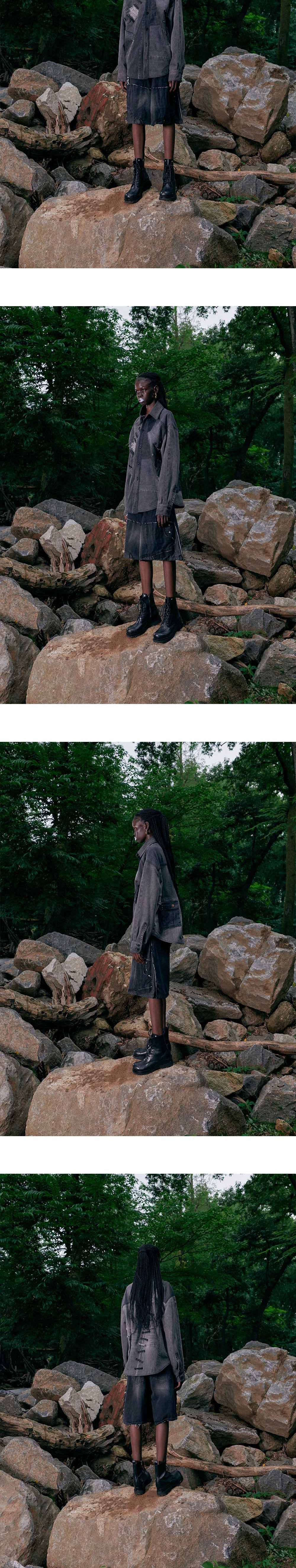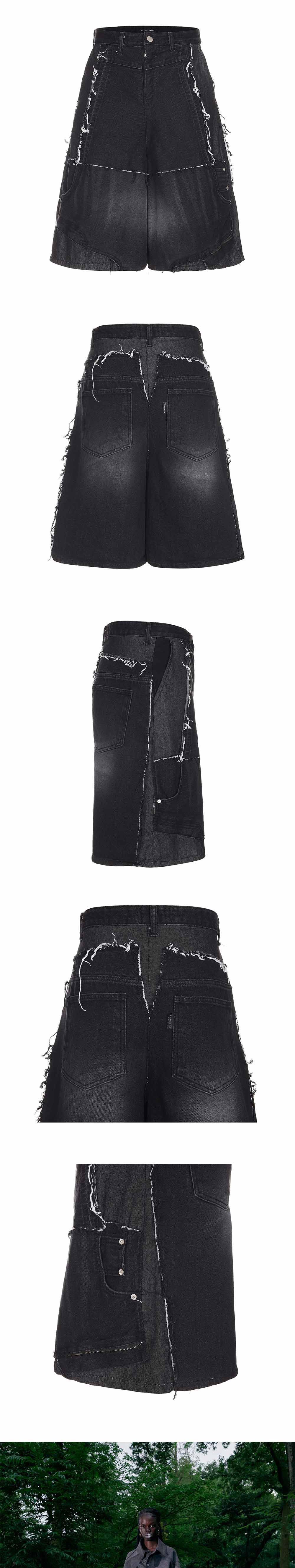 써저리 리메이크 데님 버뮤다 팬츠 블랙 데님
