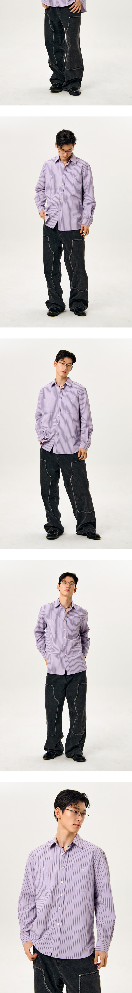 가든익스프레스 스트라이프 컴포트 셔츠 퍼플