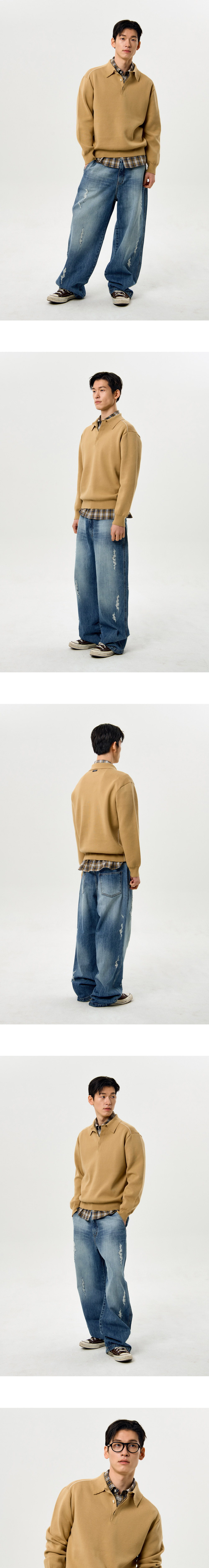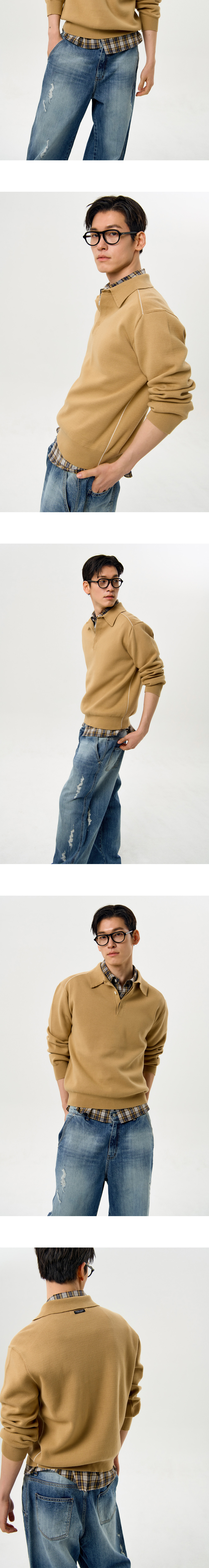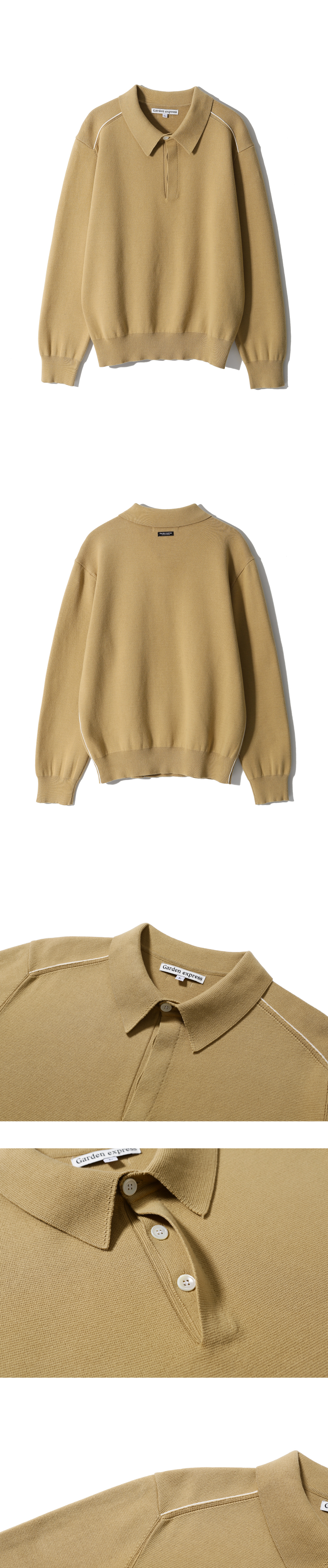 가든익스프레스 라인 포인트 칼라 니트 카멜