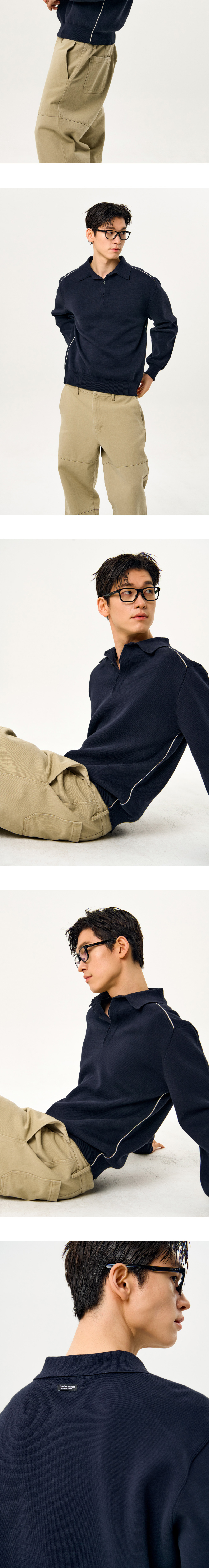 가든익스프레스 라인 포인트 칼라 니트 네이비