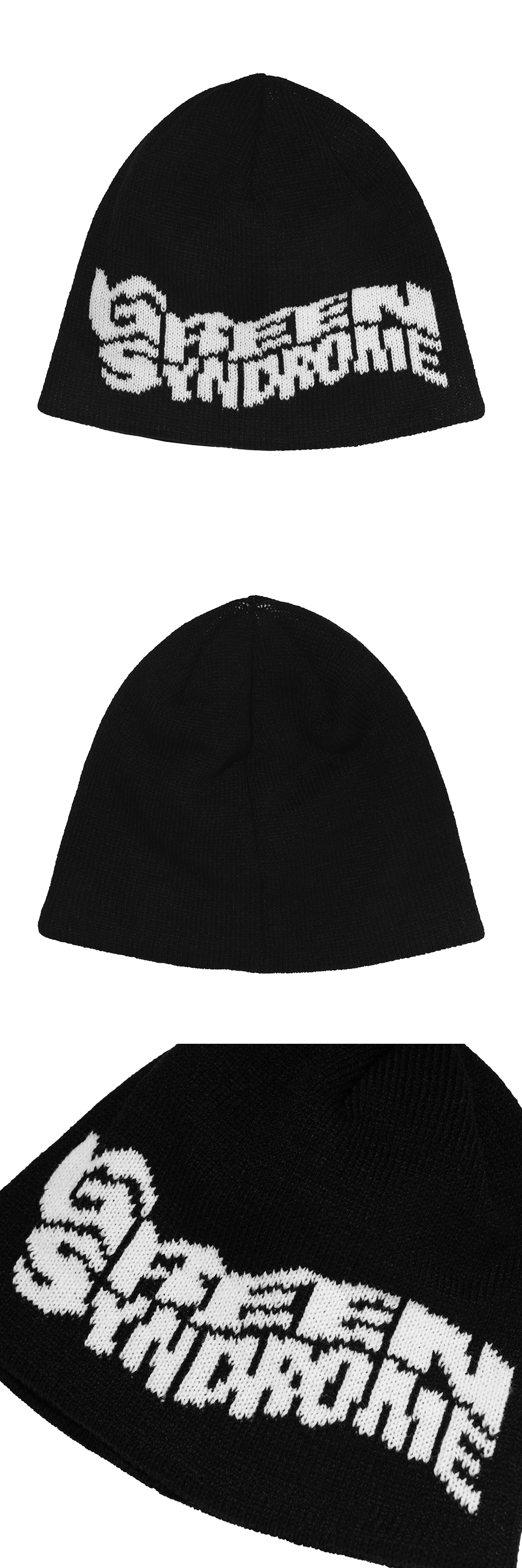 GREEN SYNDROME WEIRD LOGO BEANIE BLACK Featuring a jacquard knit "Weird Logo" 100% Acrylic Made in Korea