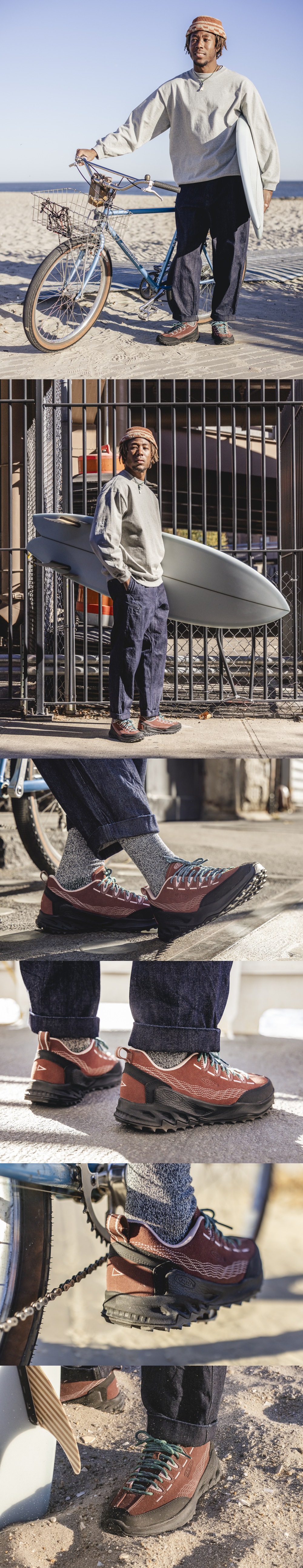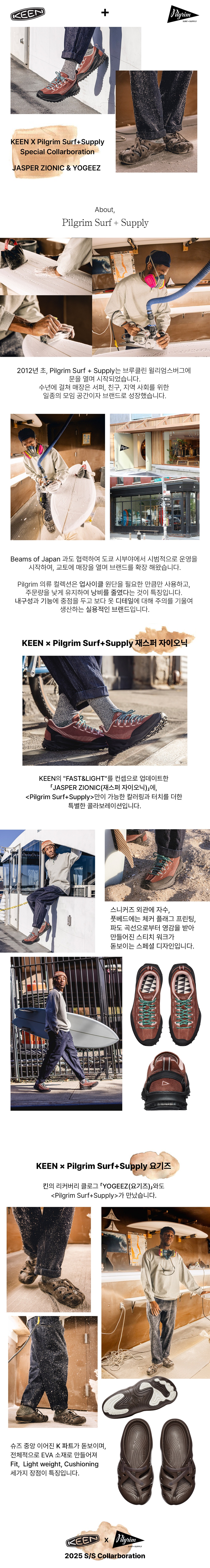 Keen X Pilgrim Surf Supply 2025 Collarboration 빠르고 가벼운 하이킹화의 성능과 브러시드 스웨이드의 깔끔하고 세련된 디자인을 겸비한 신발입니다.