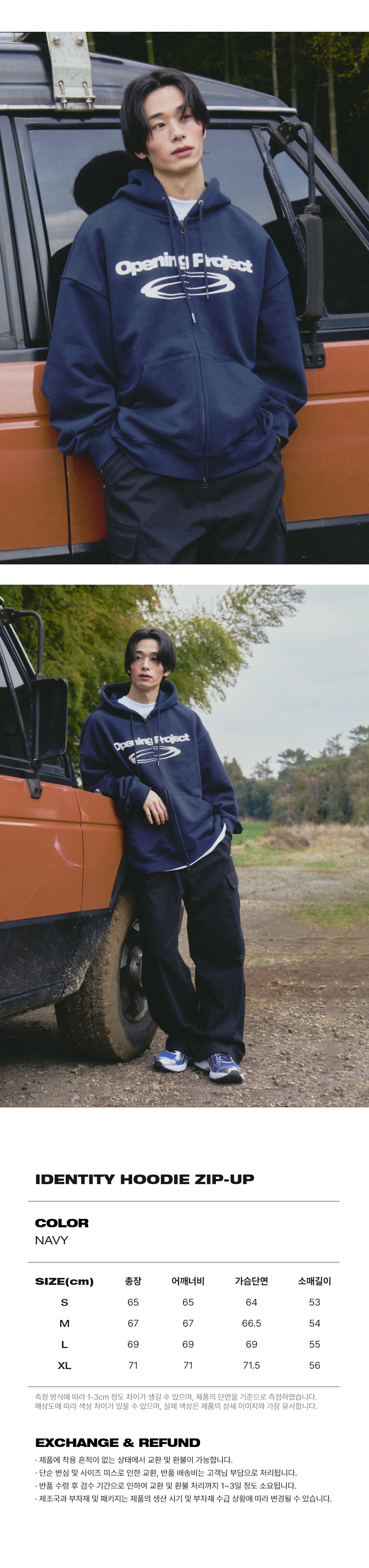 오프닝프로젝트 아이덴티티 후디 집업 네이비
