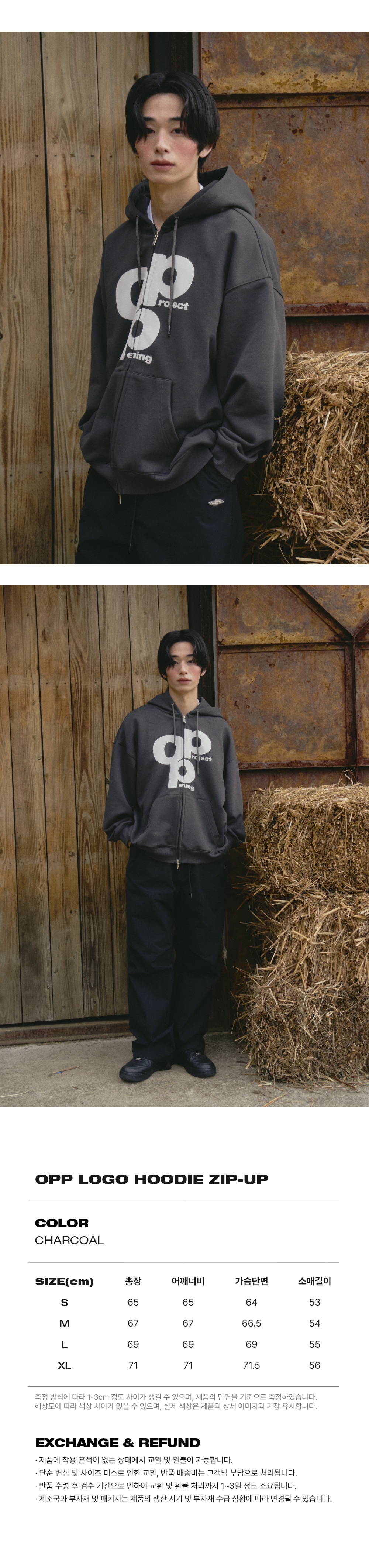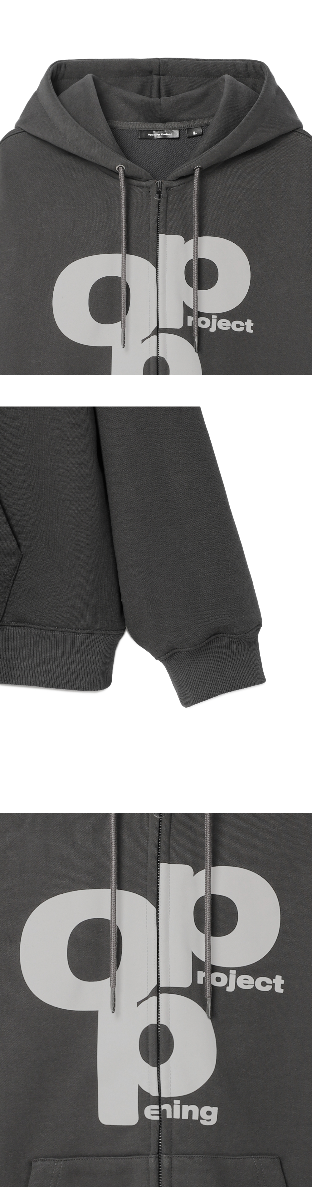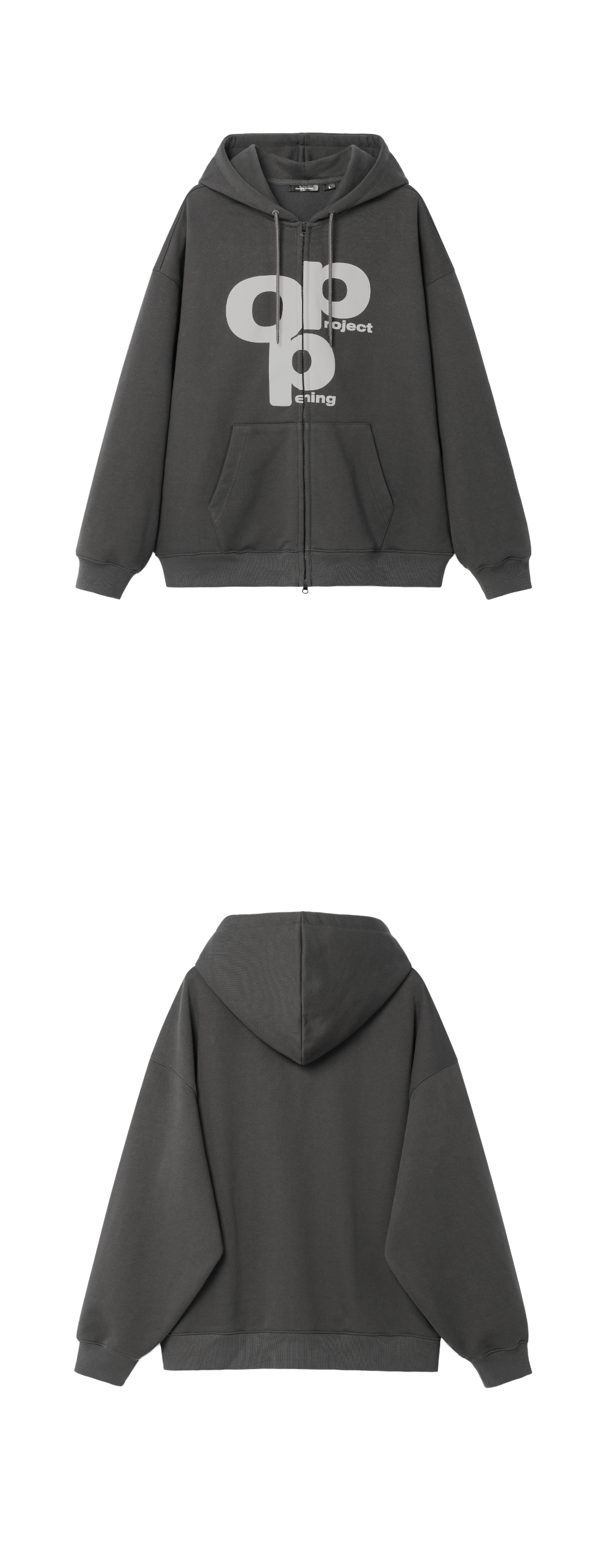 오프닝프로젝트 오피피 로고 후디 집업 차콜