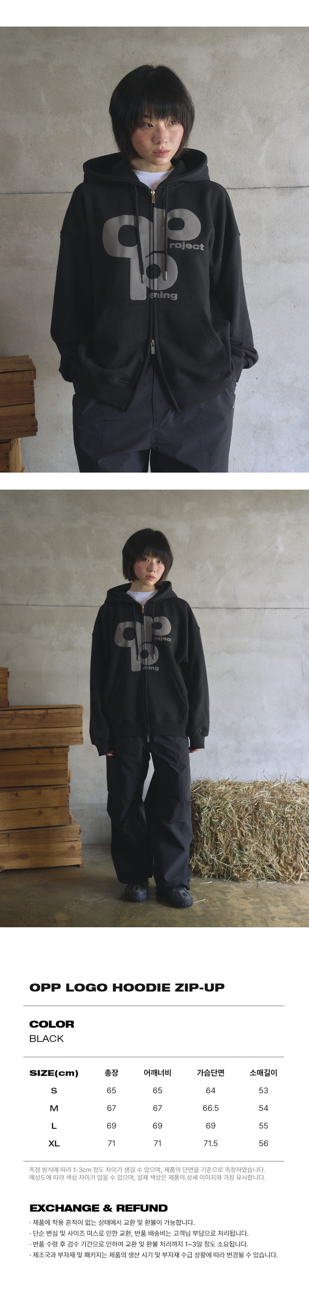 오프닝프로젝트 오피피 로고 후디 집업 블랙