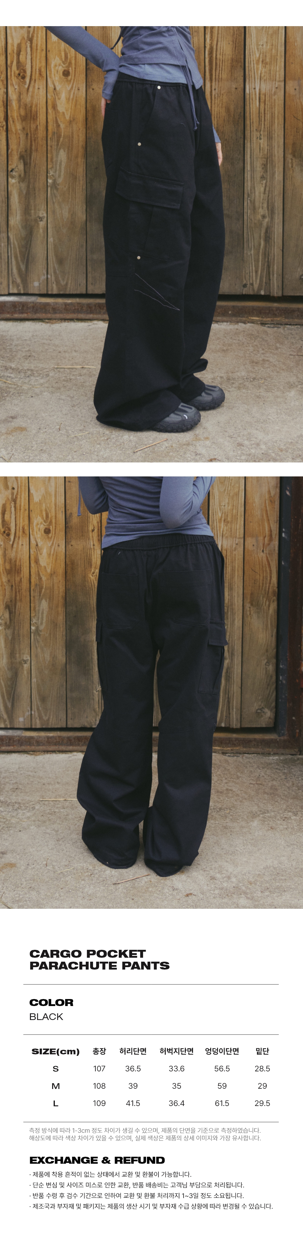오프닝프로젝트 카고 포켓 파라슈트 팬츠 블랙