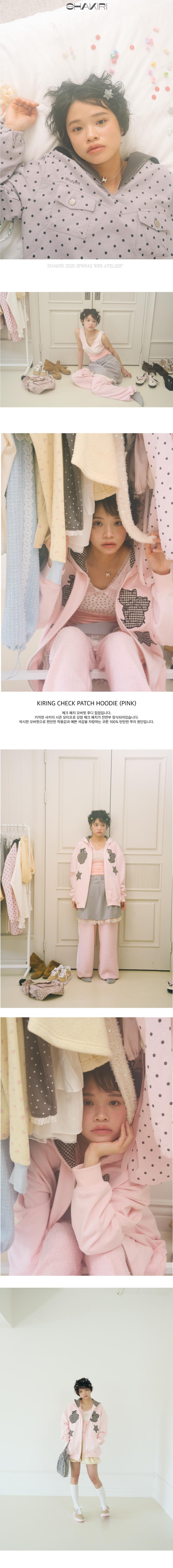 샤키리 키링 체크 패치 후디 (핑크)