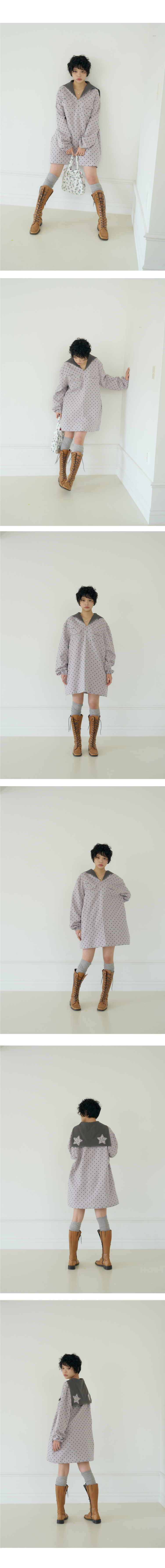 샤키리 폴카 스타 패치 세일러 드레스 (퍼플)