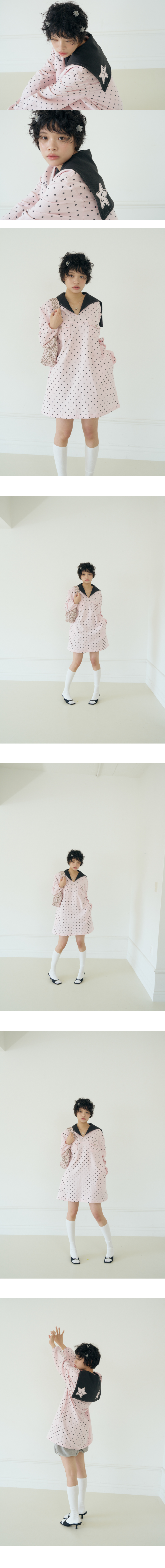 샤키리 폴카 스타 패치 세일러 드레스 (핑크)
