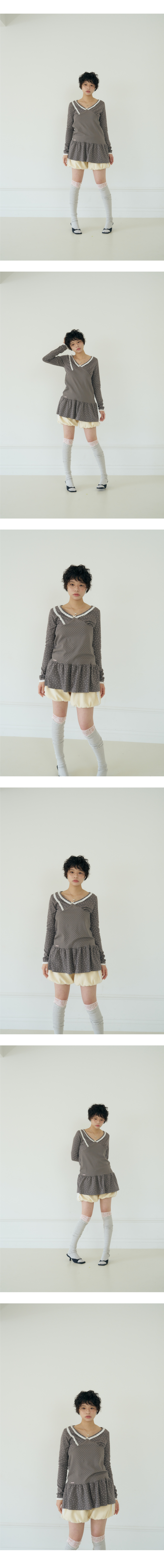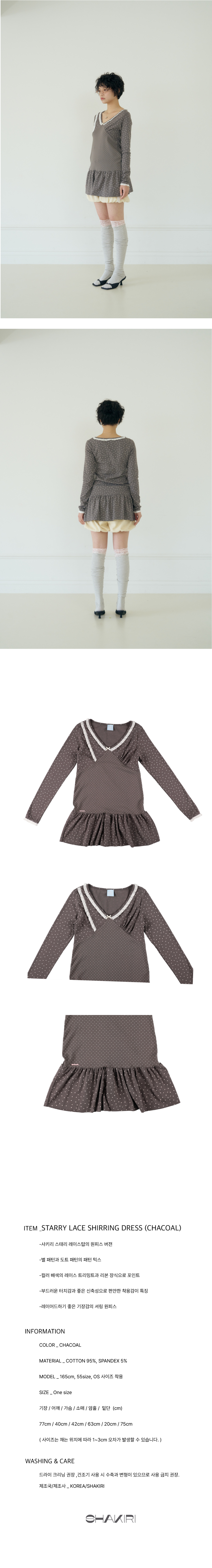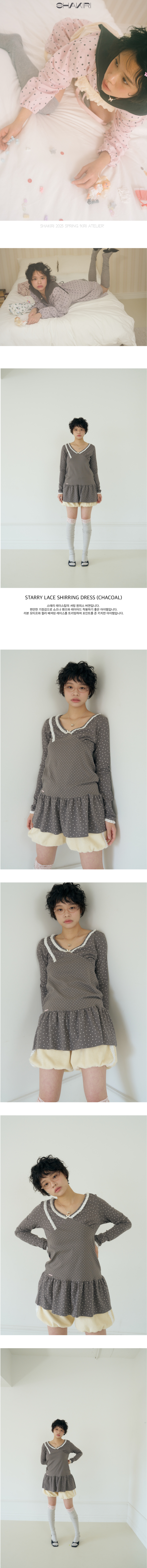 샤키리 스태리 레이스 셔링 드레스 (챠콜)