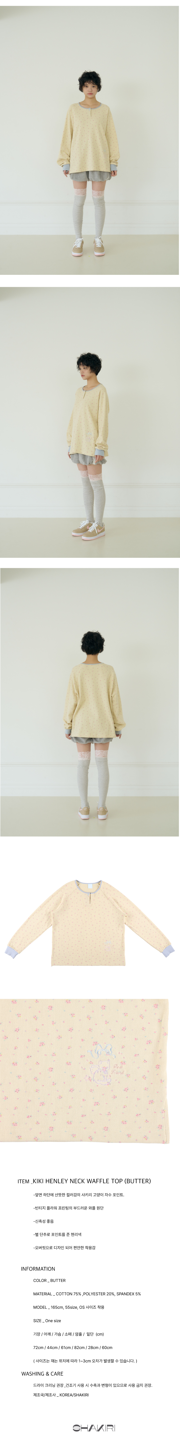 샤키리 키키 헨리 넥 와플 탑 (버터)"