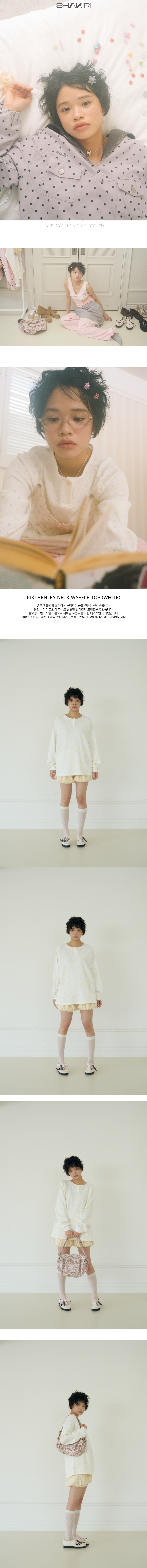샤키리 키키 헨리 넥 와플 탑 (화이트)