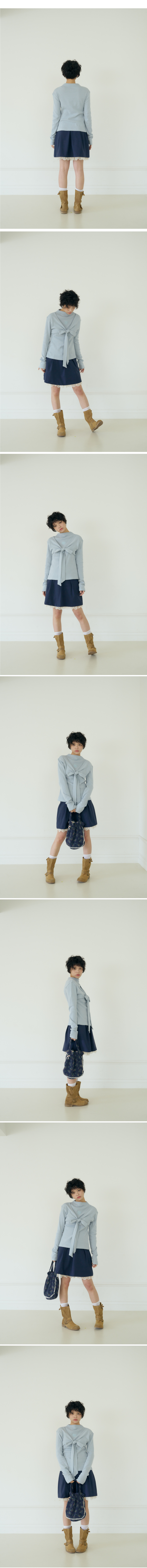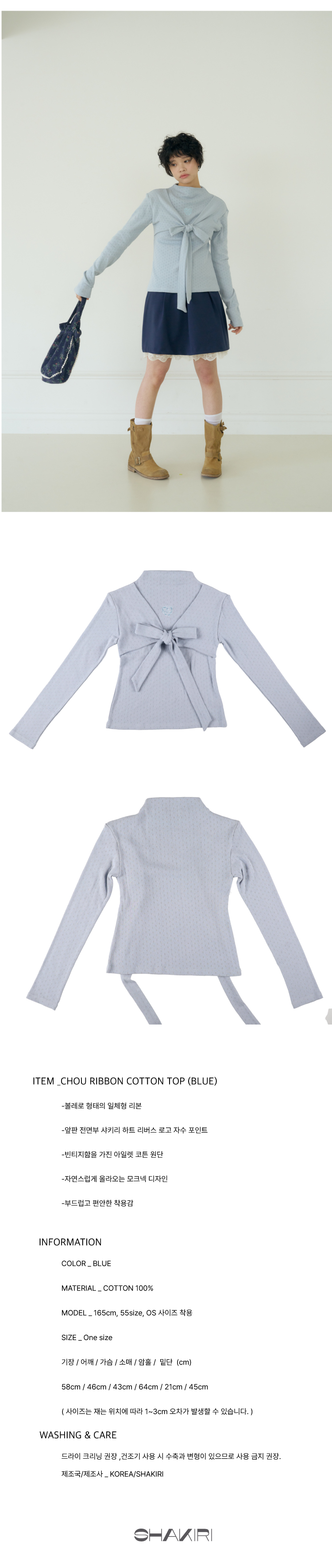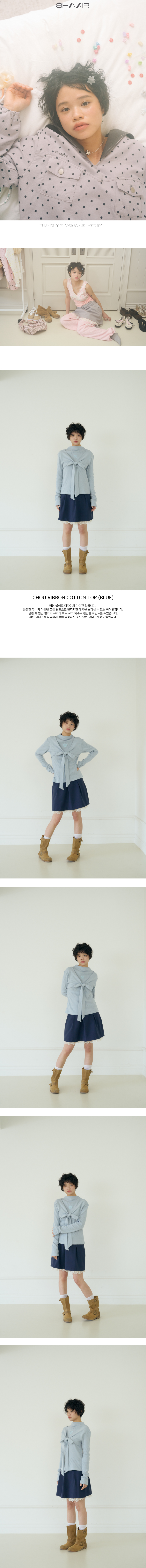 샤키리 슈 리본 코튼 탑 (블루)