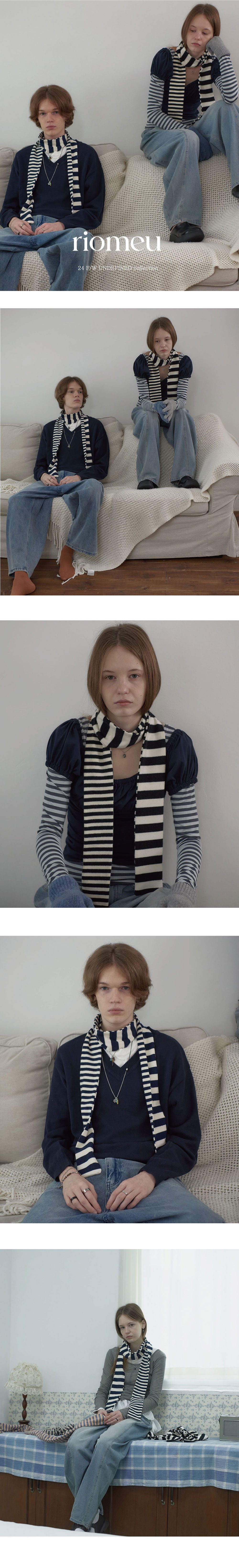 리오므 언발란스 스트라이프 머플러 네이비