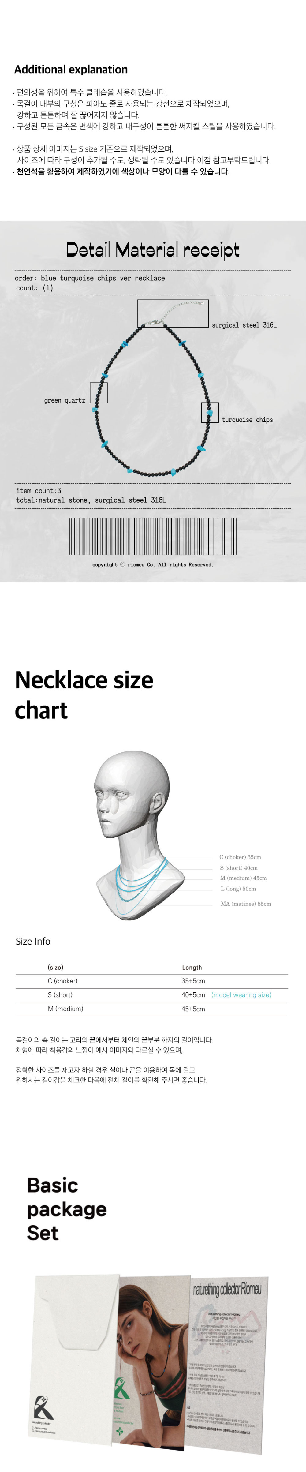 리오므 블루 터키석 목걸이 칩스 버전