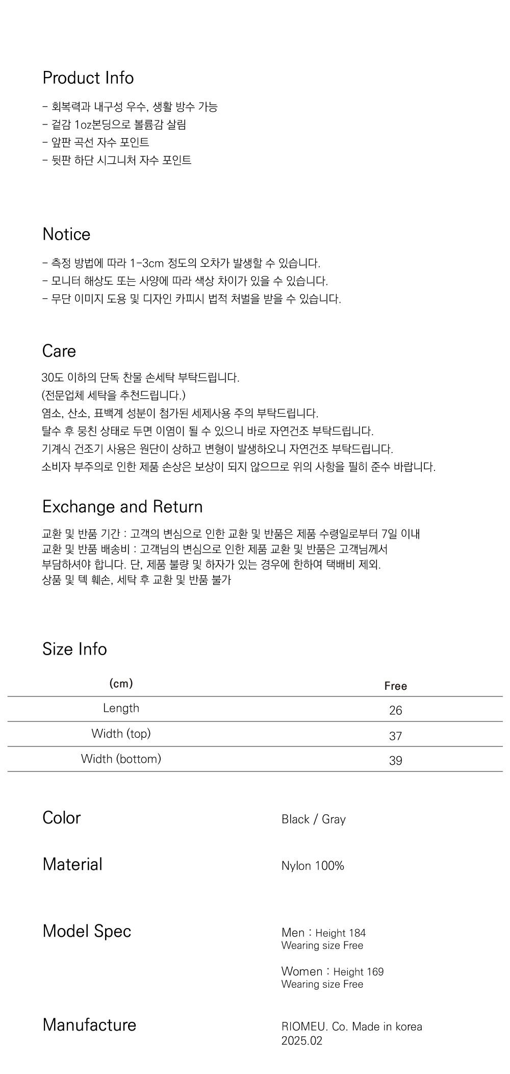 측정 방법에 따라 사이즈에 일부 오차가 있을 수 있습니다.