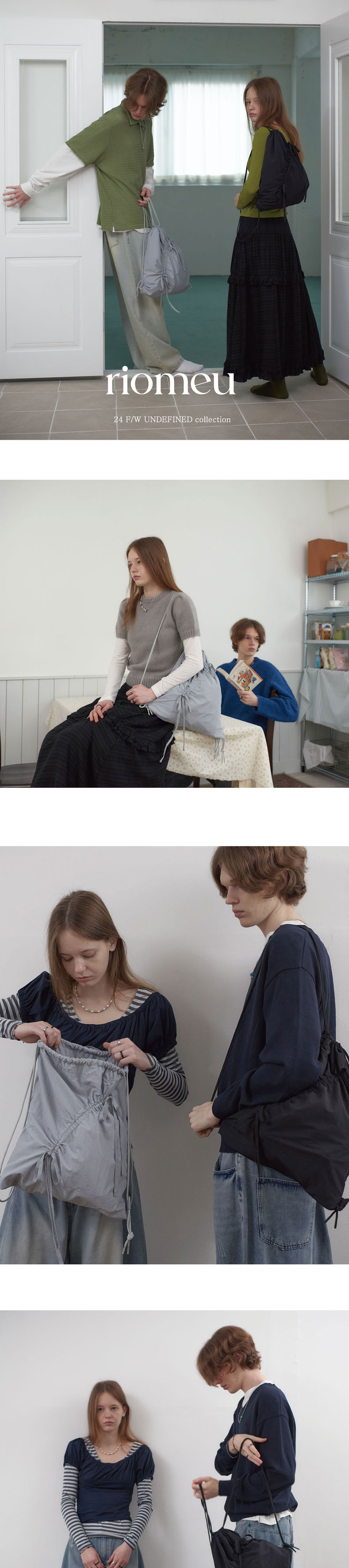 리오므 언발란스 리본 셔링 스트링 백 블랙