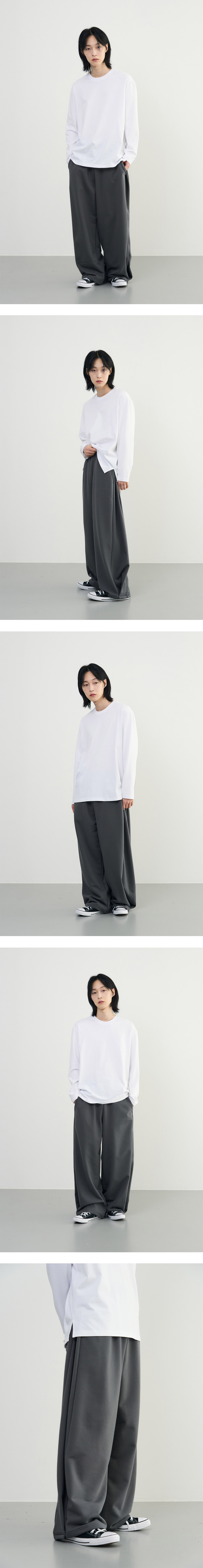 부드러운 터치감의 프리미엄 소재를 활용하여 편안한 착용감과 트렌디한 실루엣에 초점을 맞춘 제품으로 오랜 기간 다양한 코디에 범용성 높게 활용하실 수 있습니다. · 뛰어난 안착감을 위한 고탄력 허리 밴딩 · 여유 있게 드롭되는 오버사이즈 실루엣 · 몸의 라인을 따라 루즈하게 떨어지는 소재감 · 사이드 턱을 사용하여 트렌디한 디테일