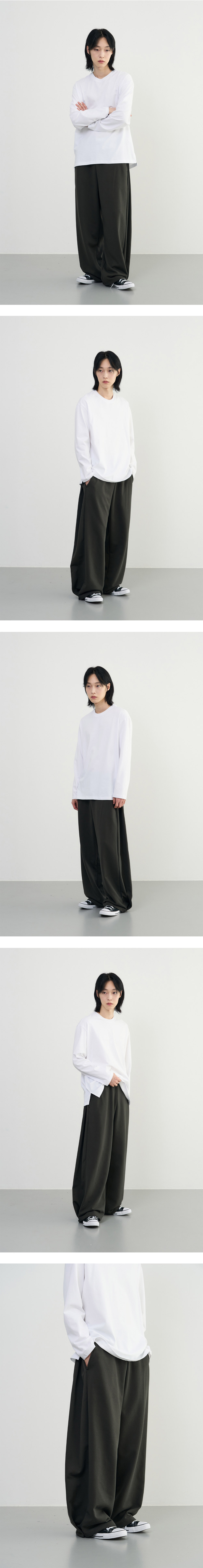 부드러운 터치감의 프리미엄 소재를 활용하여 편안한 착용감과 트렌디한 실루엣에 초점을 맞춘 제품으로 오랜 기간 다양한 코디에 범용성 높게 활용하실 수 있습니다. · 뛰어난 안착감을 위한 고탄력 허리 밴딩 · 여유 있게 드롭되는 오버사이즈 실루엣 · 몸의 라인을 따라 루즈하게 떨어지는 소재감 · 사이드 턱을 사용하여 트렌디한 디테일