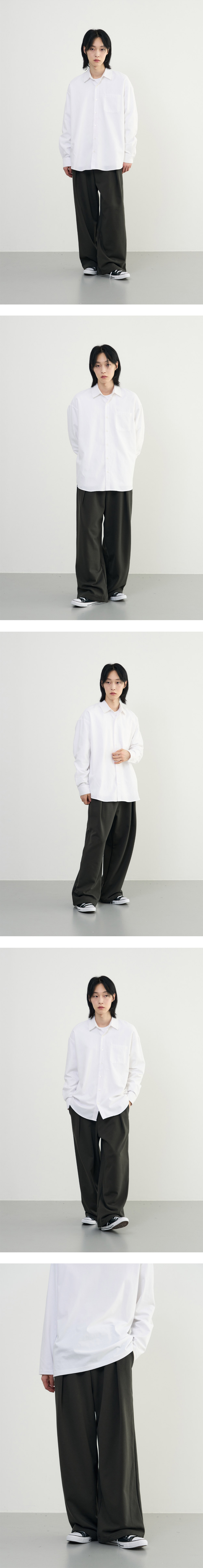 부드러운 터치감의 프리미엄 소재를 활용하여 편안한 착용감과 트렌디한 실루엣에 초점을 맞춘 제품으로 오랜 기간 다양한 코디에 범용성 높게 활용하실 수 있습니다. · 뛰어난 안착감을 위한 고탄력 허리 밴딩 · 여유 있게 드롭되는 오버사이즈 실루엣 · 몸의 라인을 따라 루즈하게 떨어지는 소재감 · 리버스 턱을 사용하여 트렌디한 디테일