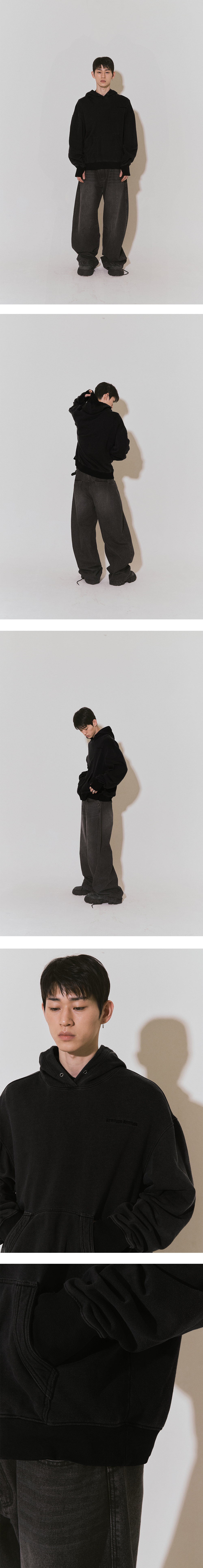 애티튜드 애티튜드 커브드 가먼트다잉 스웻 후드 블랙