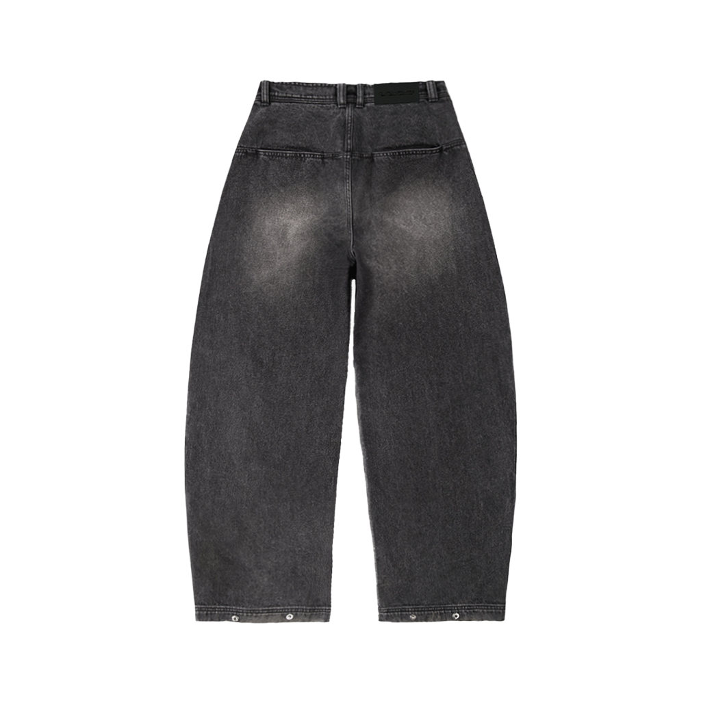 애티튜드 애티튜드 커브드 라인 워싱 와이드 데님 팬츠 블랙