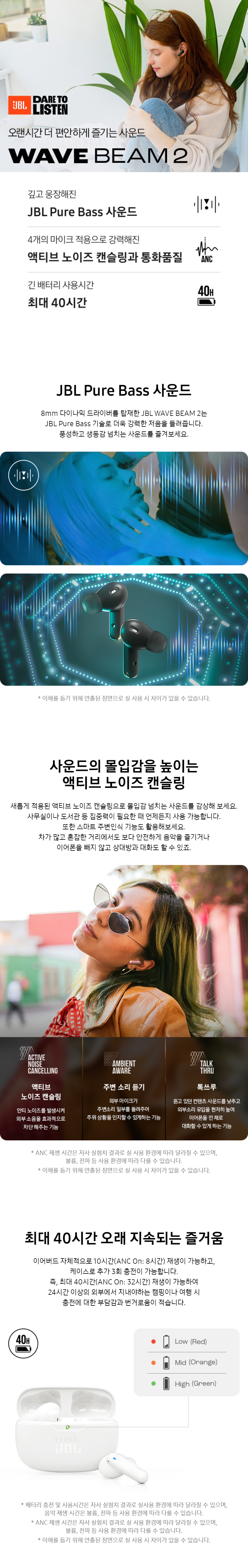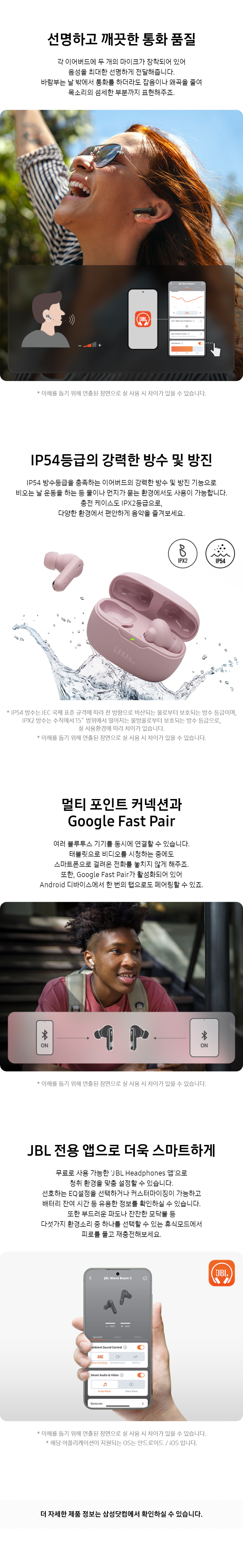 제이비엘 웨이브 빔2 블루투스 이어폰 핑크
