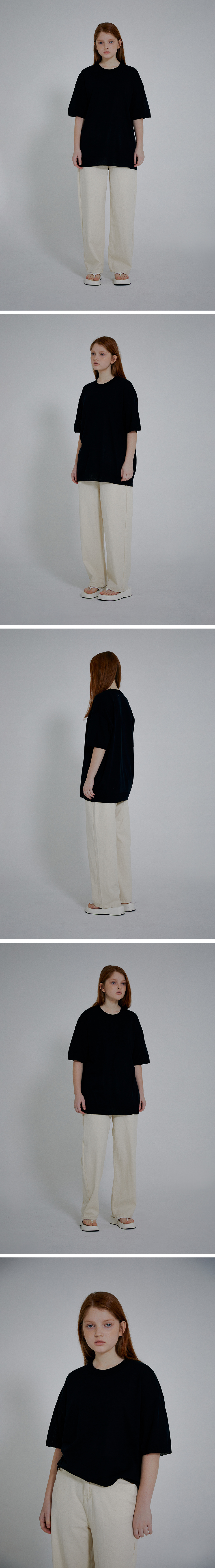 니티드 쿨 썸머 에센셜 라운드 반팔 니트티 블랙