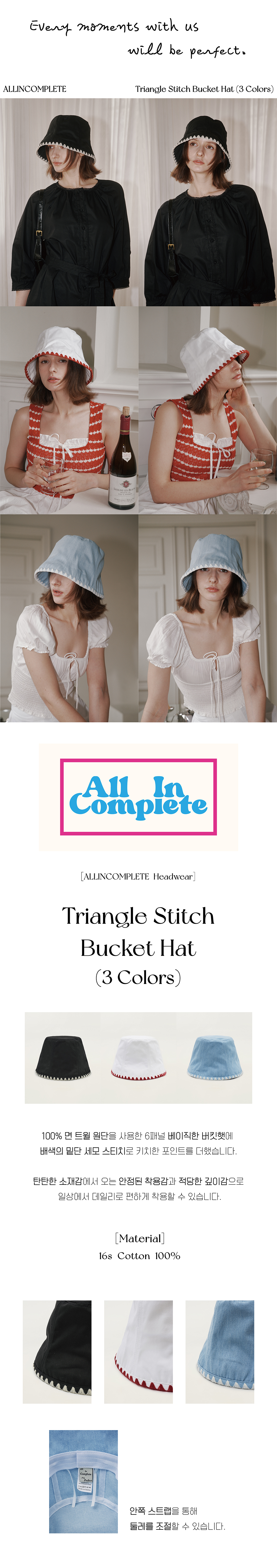 올인컴플리트 트라이앵글 스티치 버킷햇 연청
