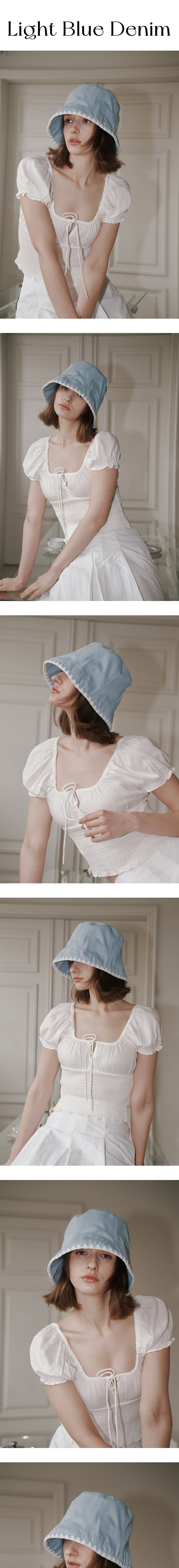Allincomplete Triangle Stitch Bucket Hat Light Blue Denim