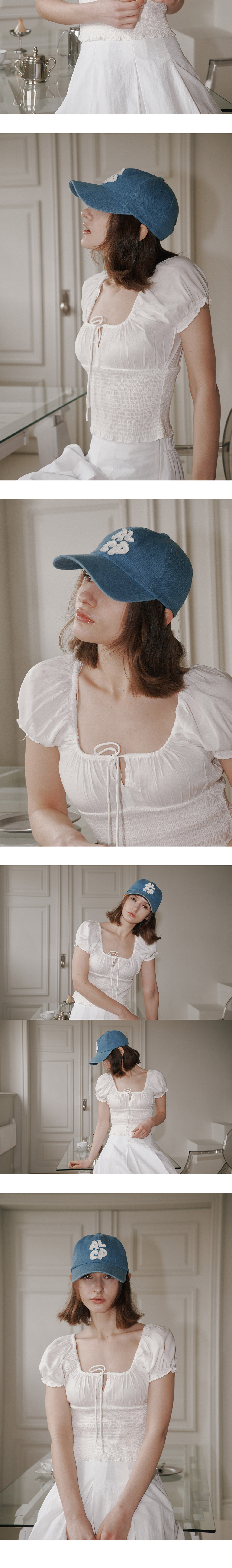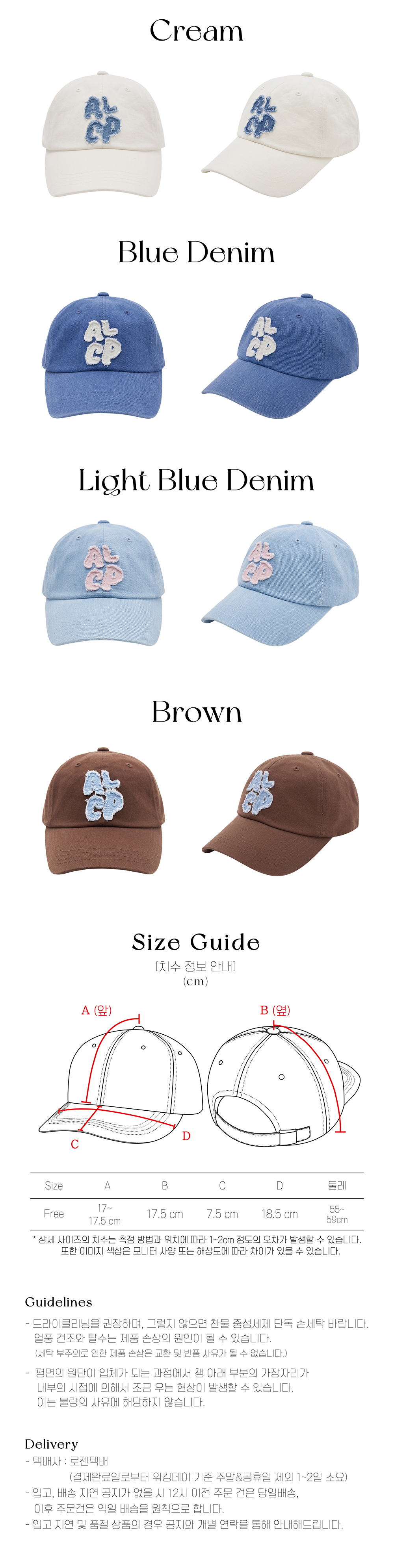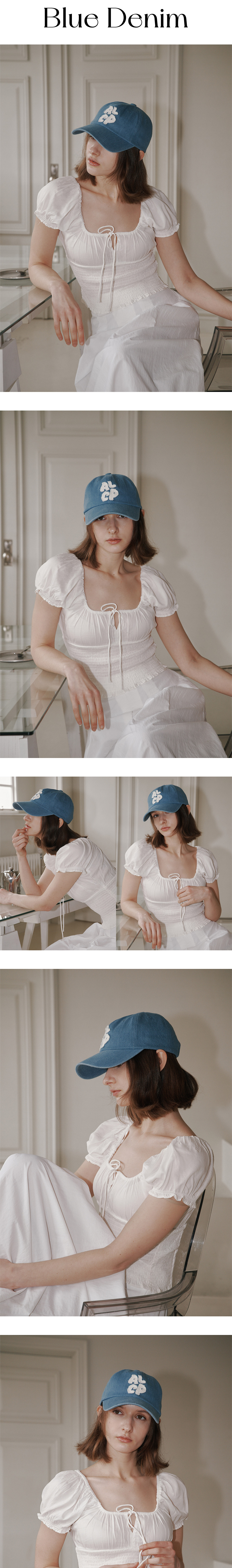올인컴플리트 ALCP 아플리케 워시드 남녀공용 볼캡 블루 데님