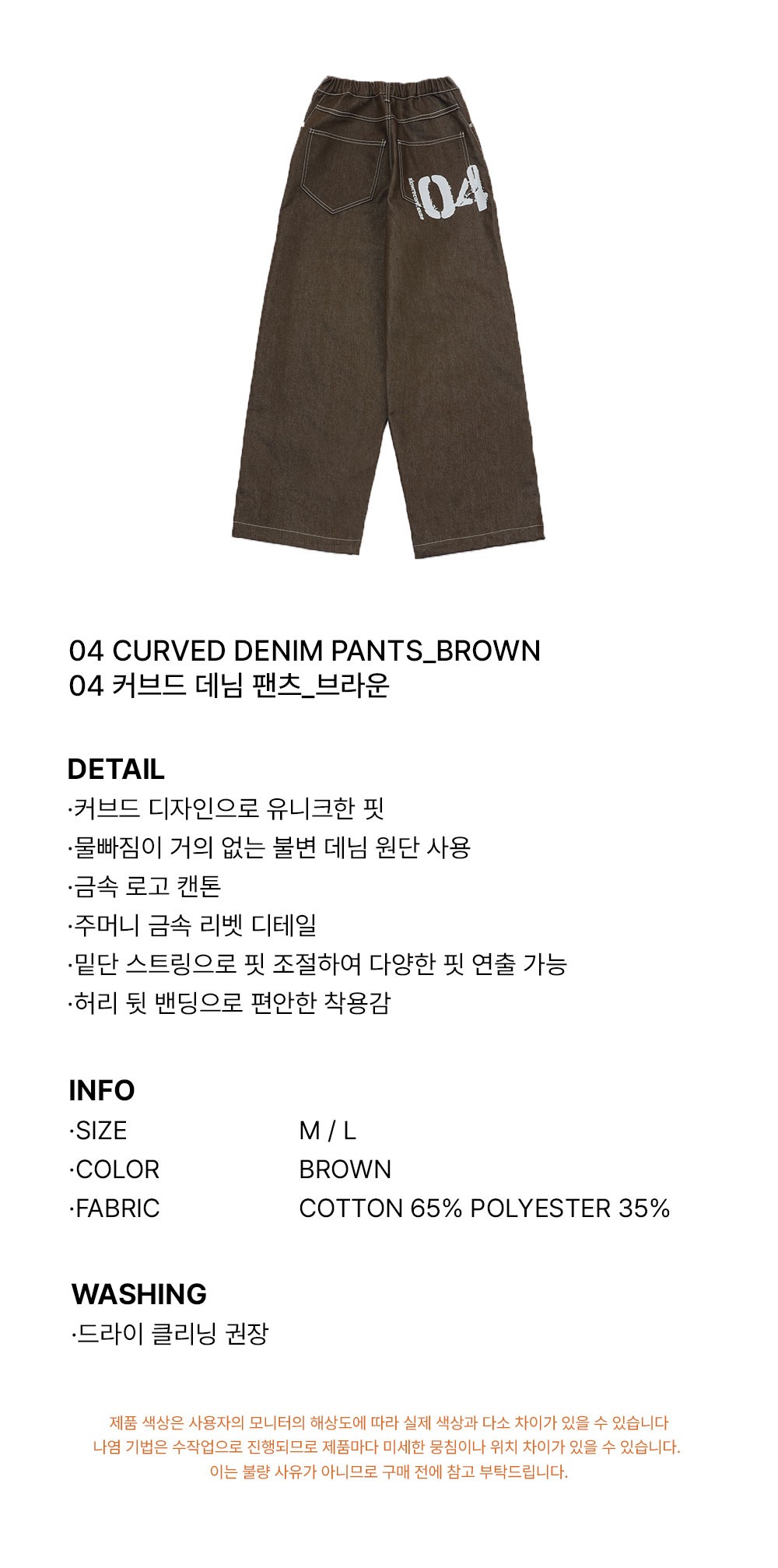 슬로우 레코드 하우스 04 커브드 데님 팬츠 브라운
