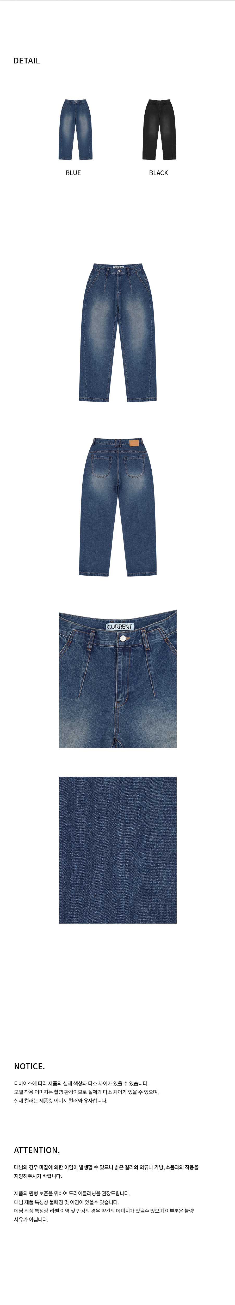 *데님의 경우 마찰에 의한 이염이 발생할 수 있으니 밝은 컬러의 의류나 가방, 소품과의 착용을 지양해주시기 바랍니다