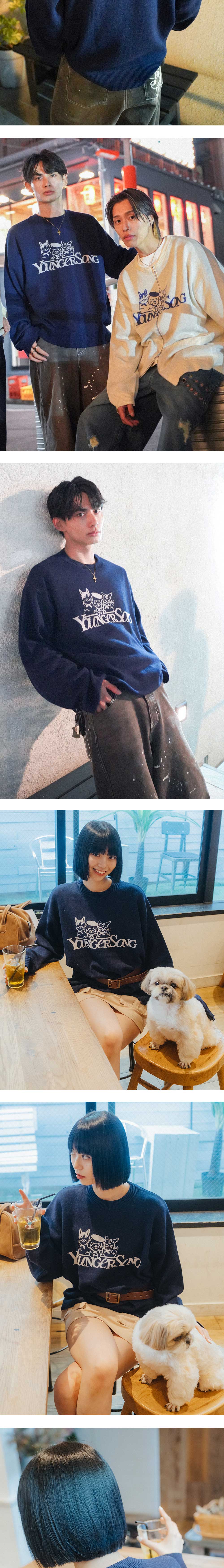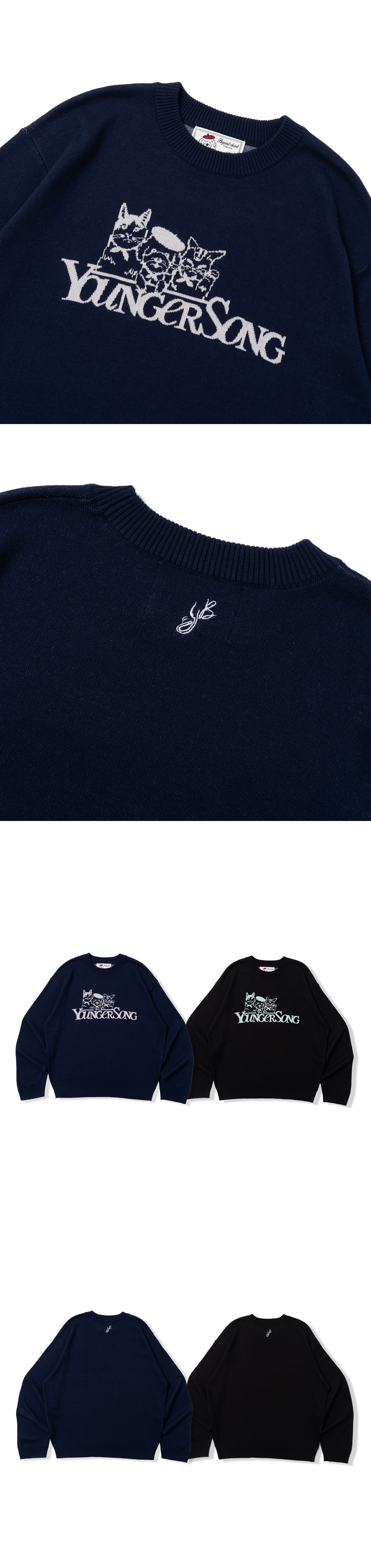 비욘드클로젯 X 영거송 디자인 크루넥 니트 네이비